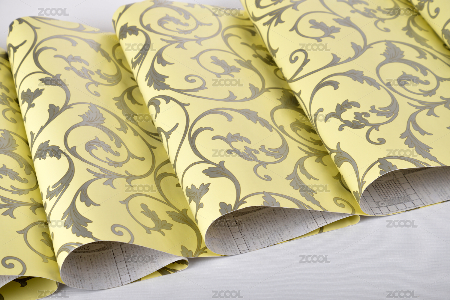 黄色欧式装饰花纹墙纸材料