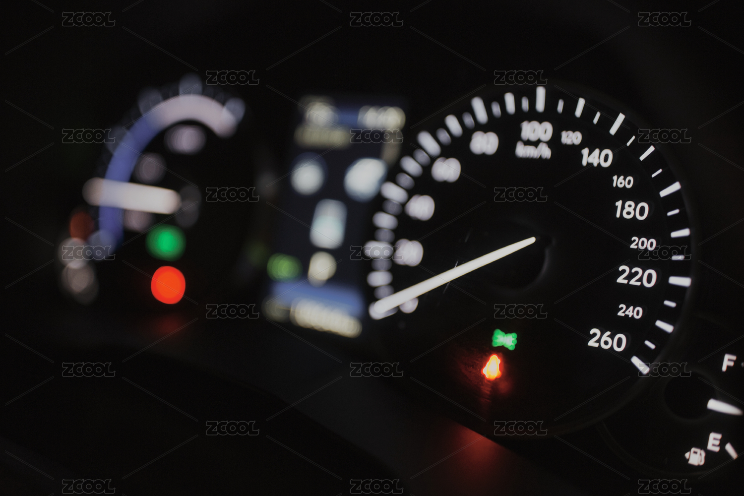 汽车仪表盘夜间特写