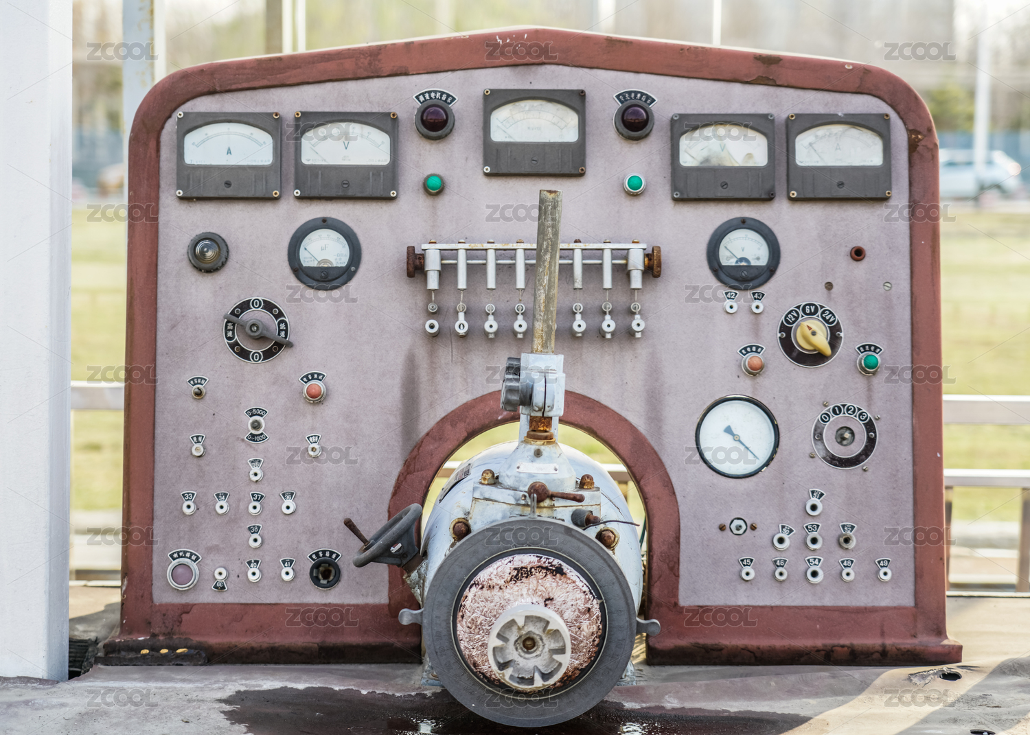 工厂中废弃生锈的机器操纵杆和按钮