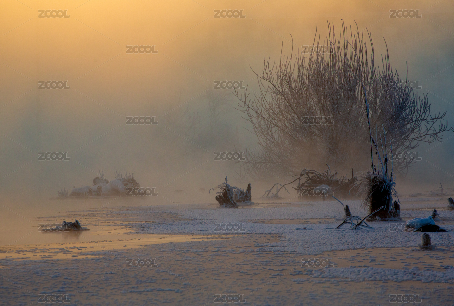 中国吉林延边长白山下魔界雾凇冰凌日出