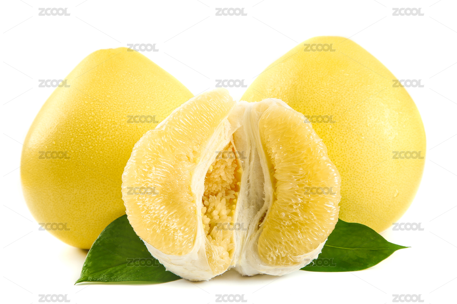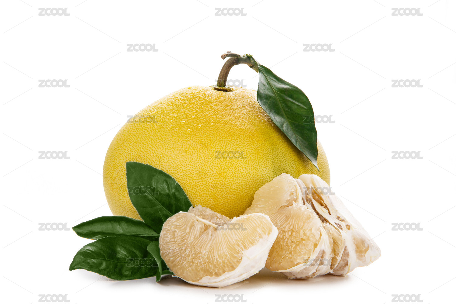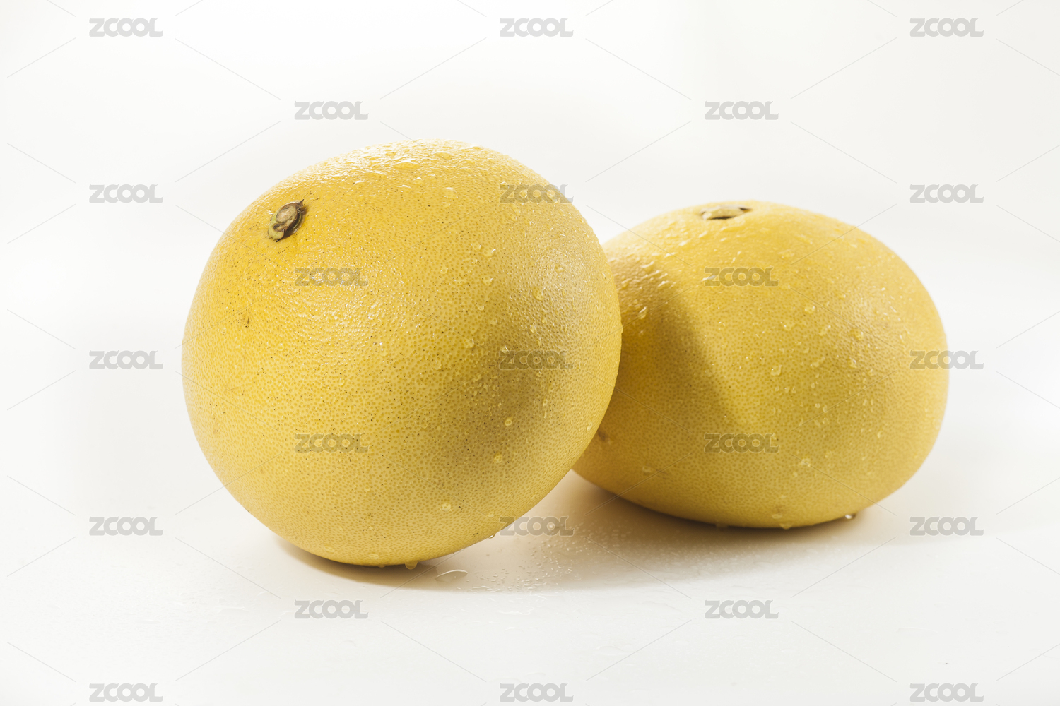 白底上放着两个蜜柚和半边去皮的文旦柚果肉