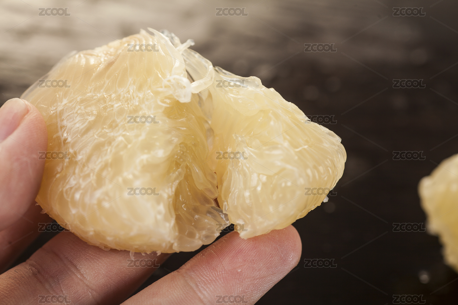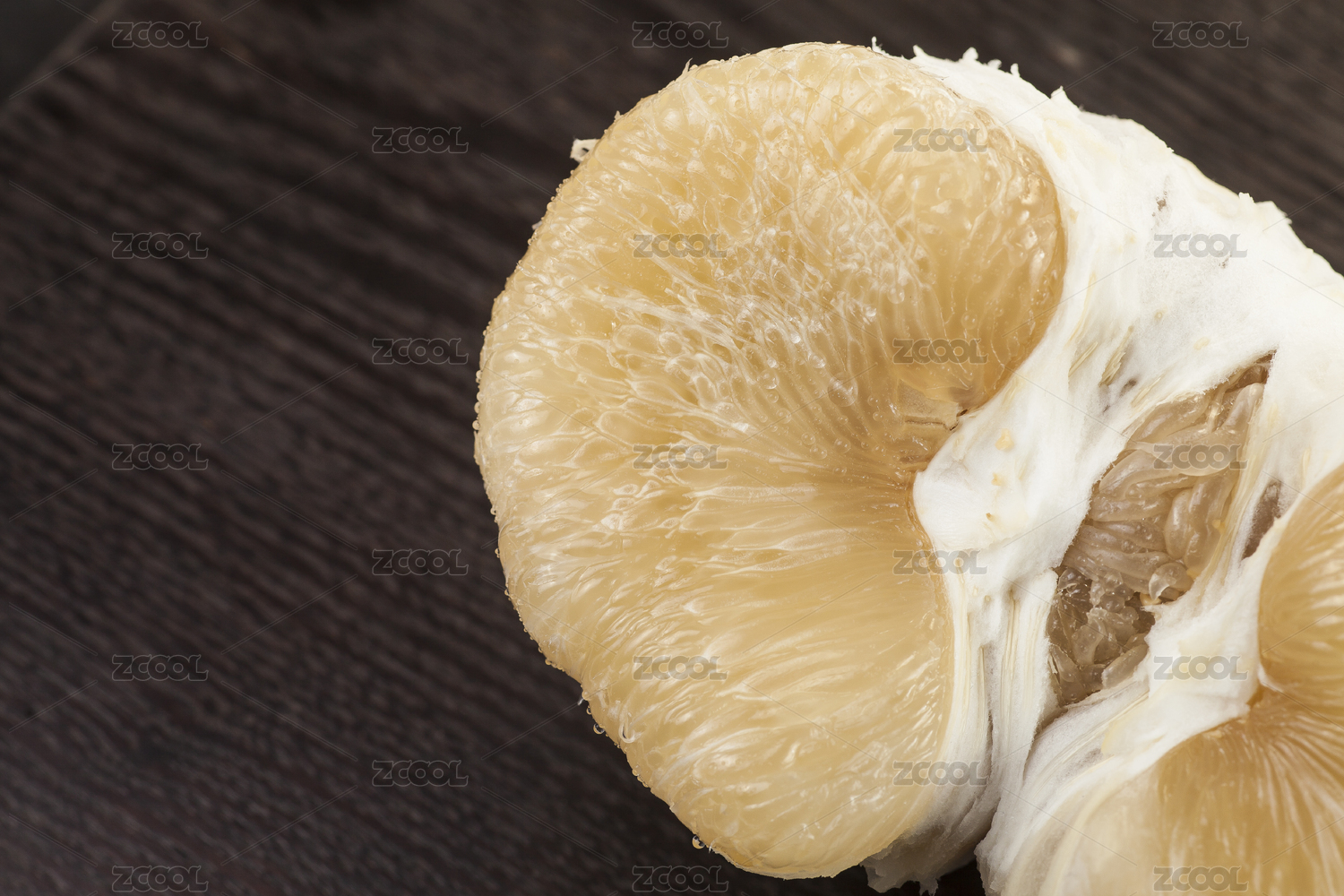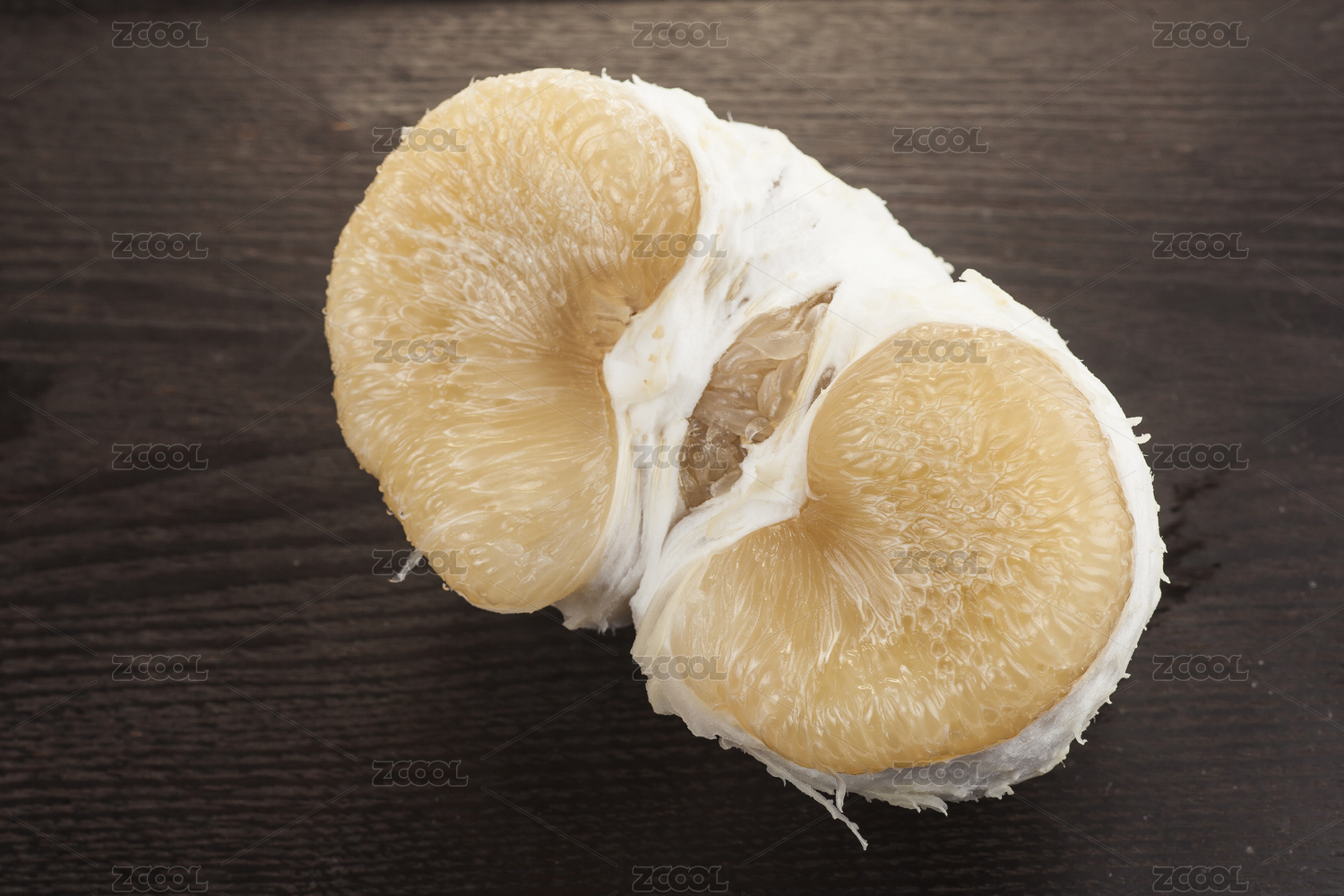 白底上放着两个蜜柚和半边去皮的文旦柚果肉