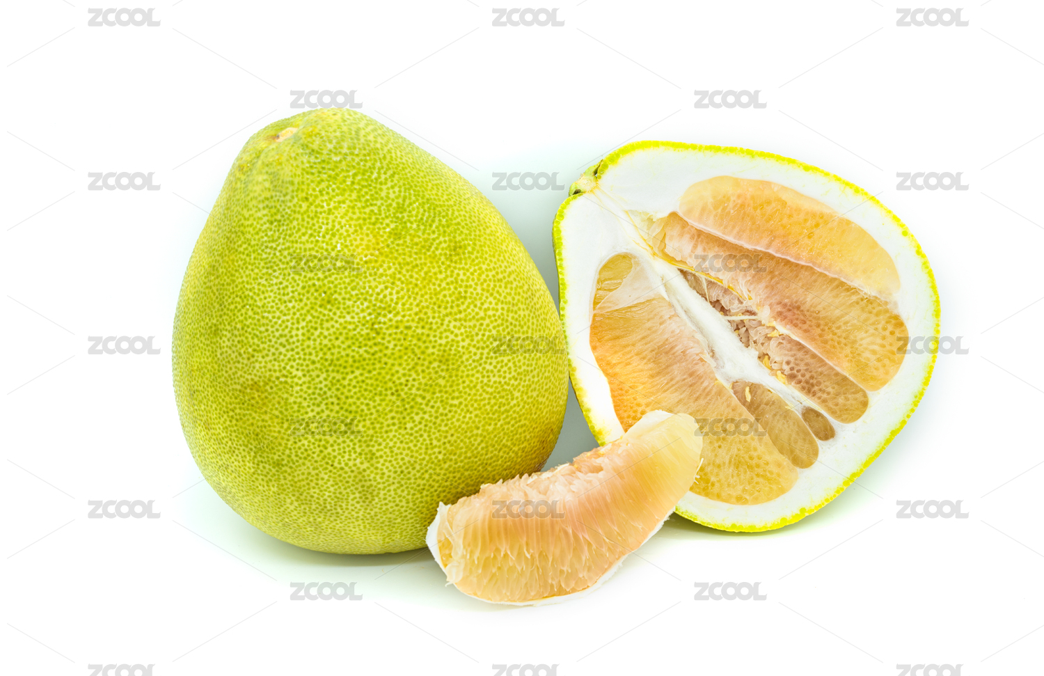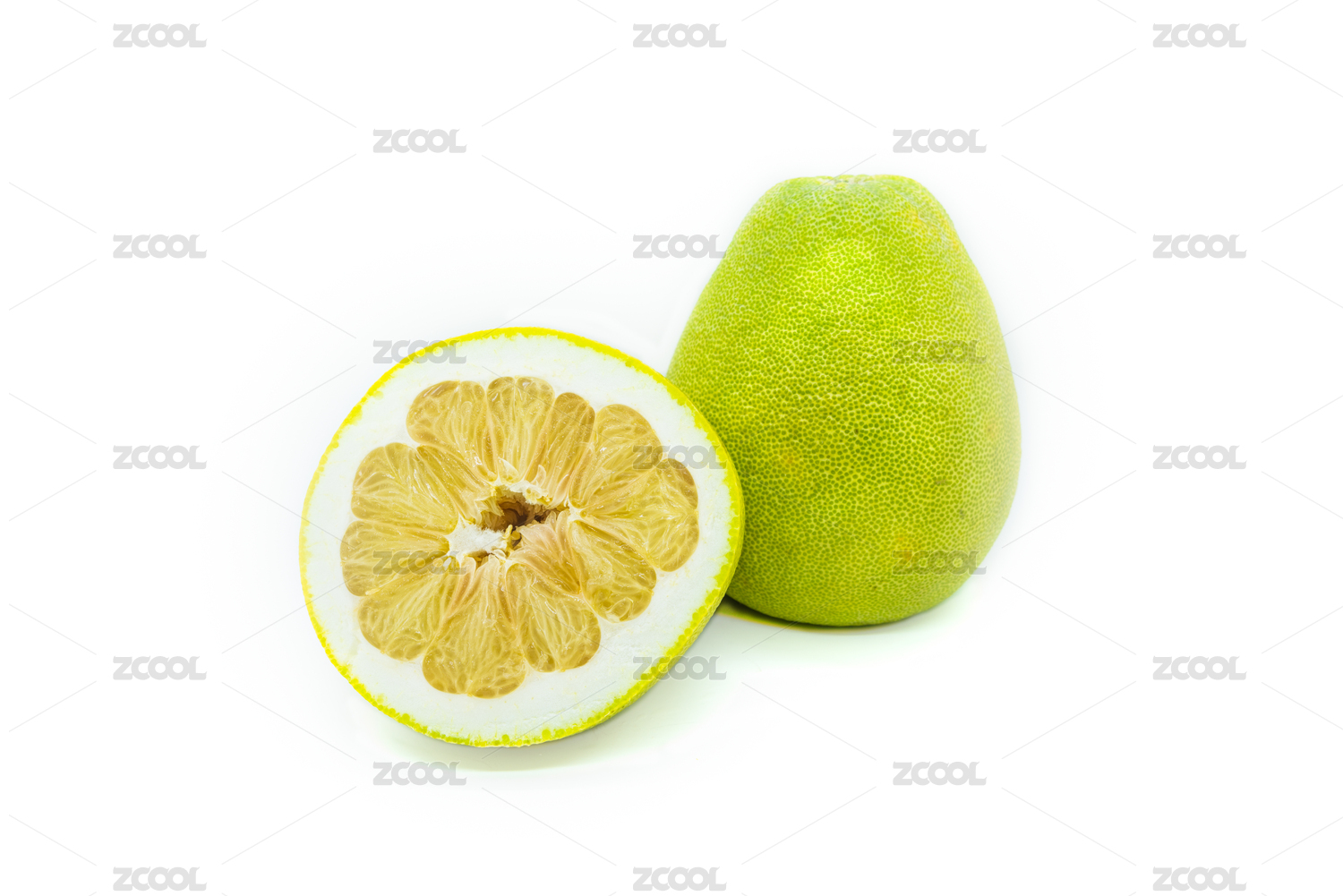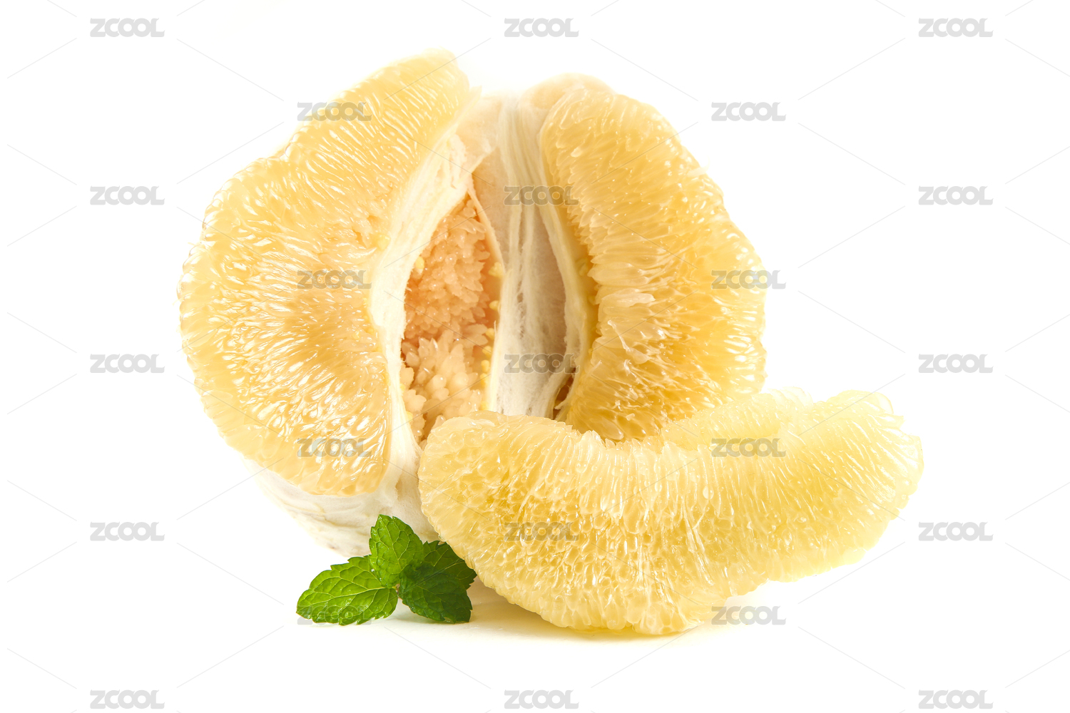 白色背景对半切开的台湾特产麻豆文旦柚子