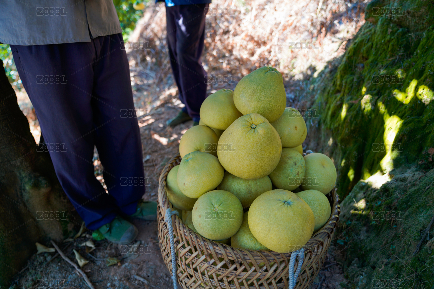 白色背景竹篮里切开的台湾特产麻豆文旦柚子