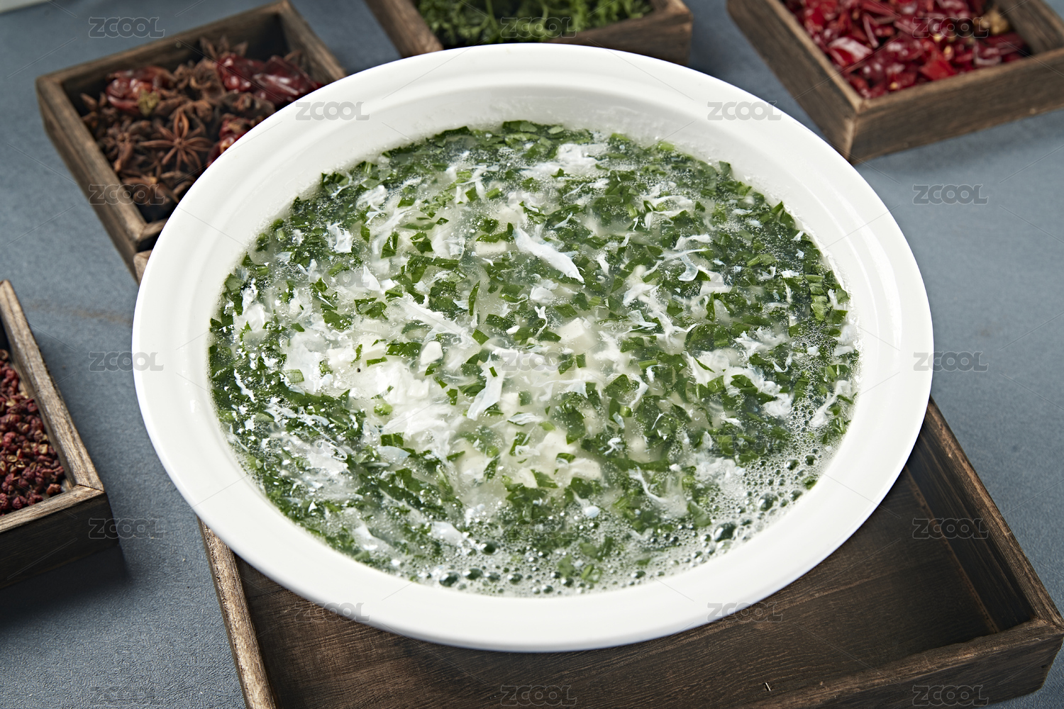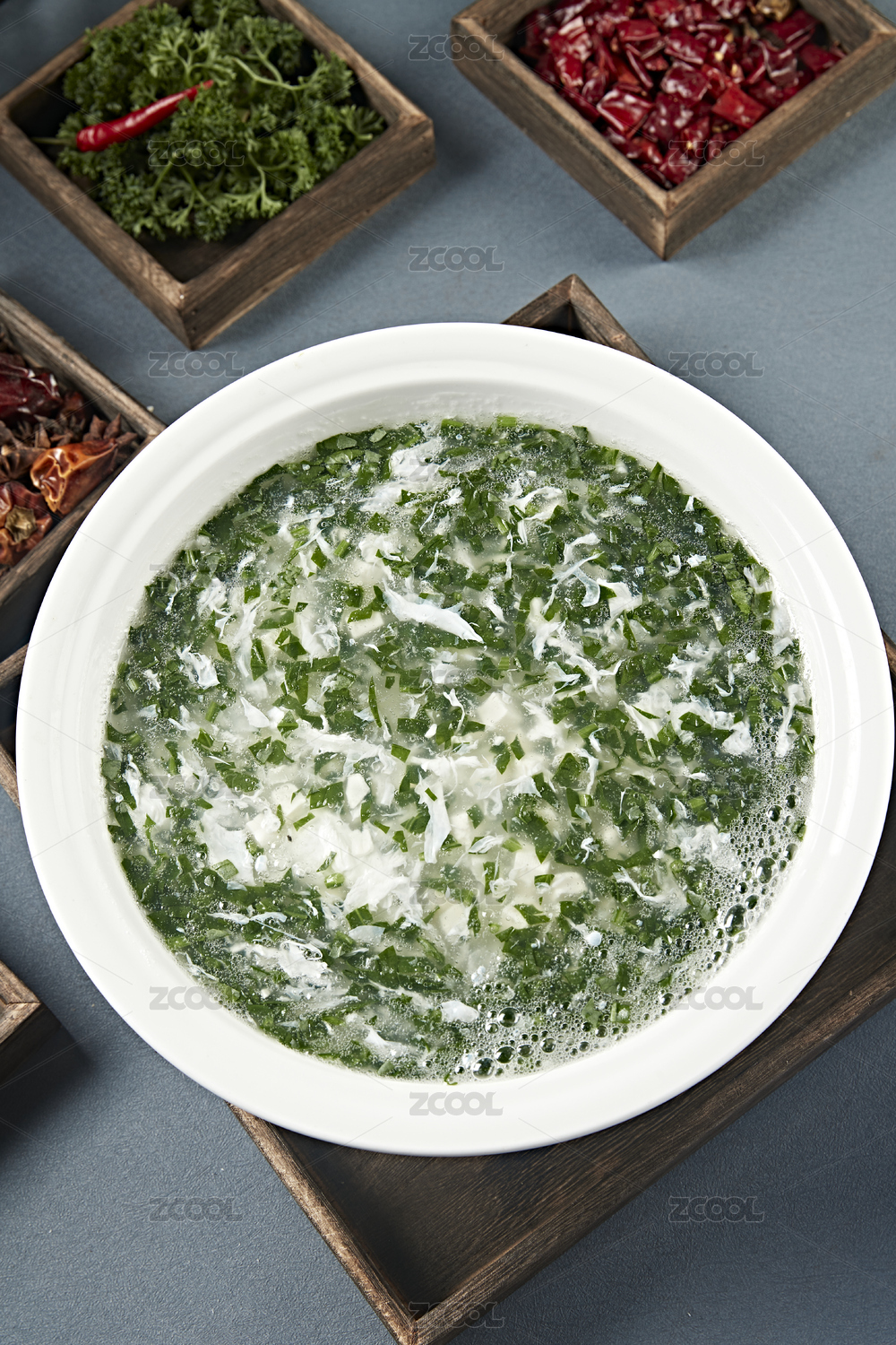 白色圆形汤瓷盆装的乌鱼蛋花汤