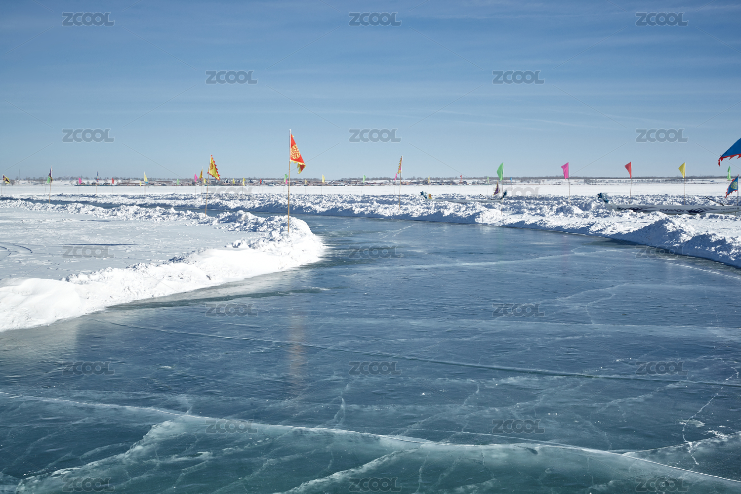 河北省张家口沽源县天鹅湖冬季湖面滑冰跑道