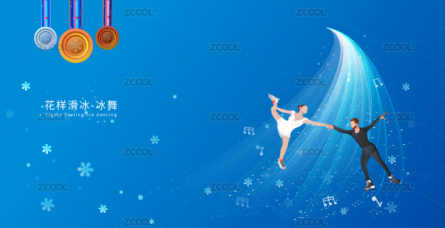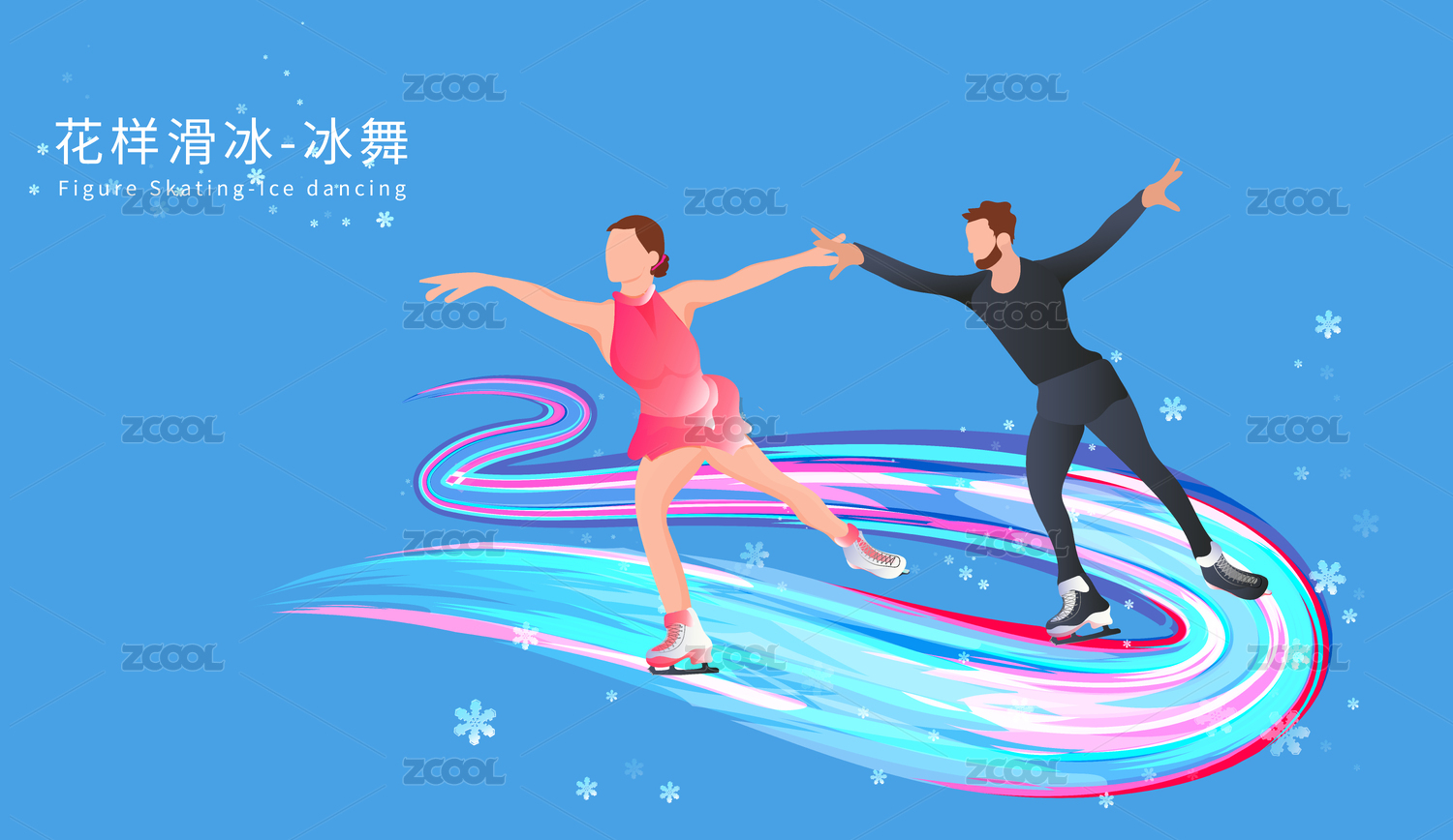 冰舞项目花样滑冰运动竞技冬奥会的插画