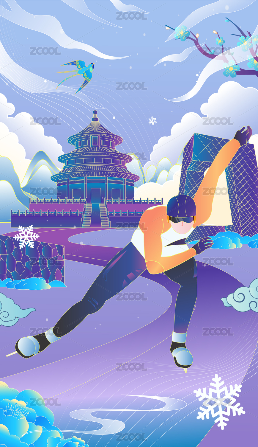 冬奥会滑冰比赛运动插画冬天短道速滑海报