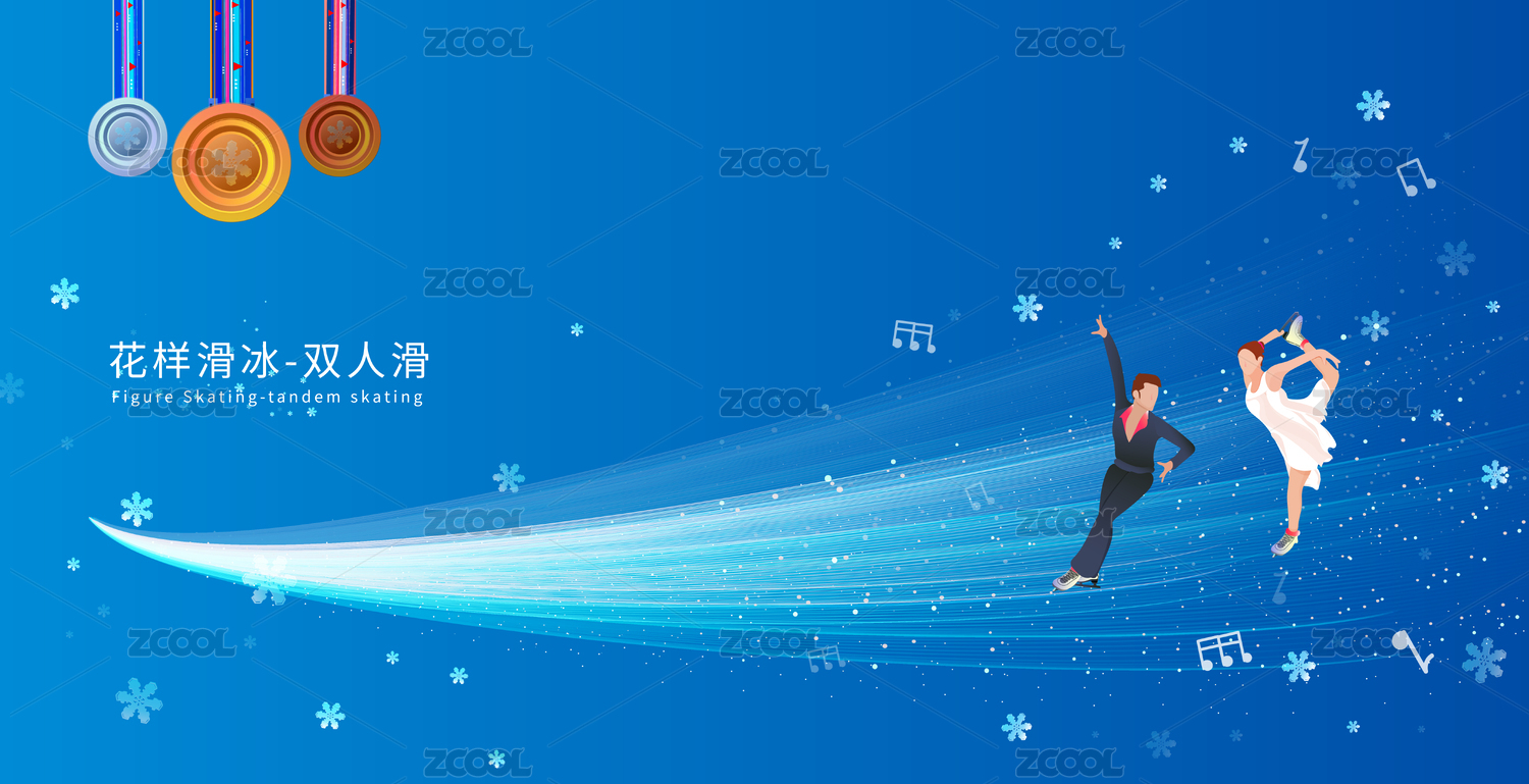 双人滑花样滑冰运动竞技项目冬奥会的插画