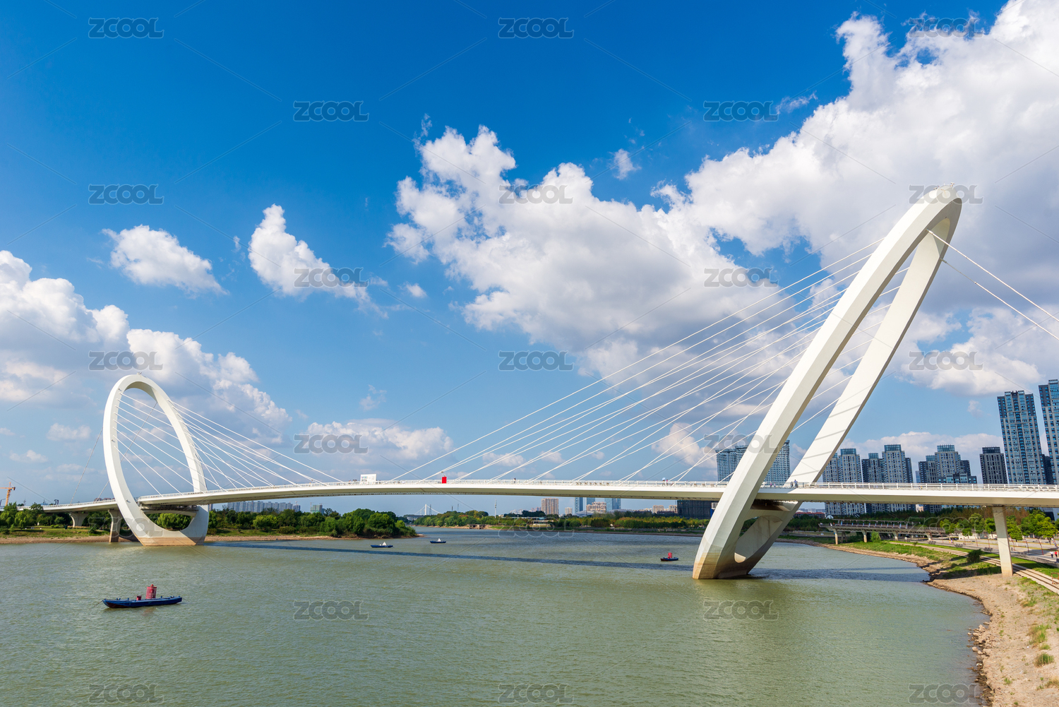 晴朗天空下中国江苏省南京市南京眼步行桥风景