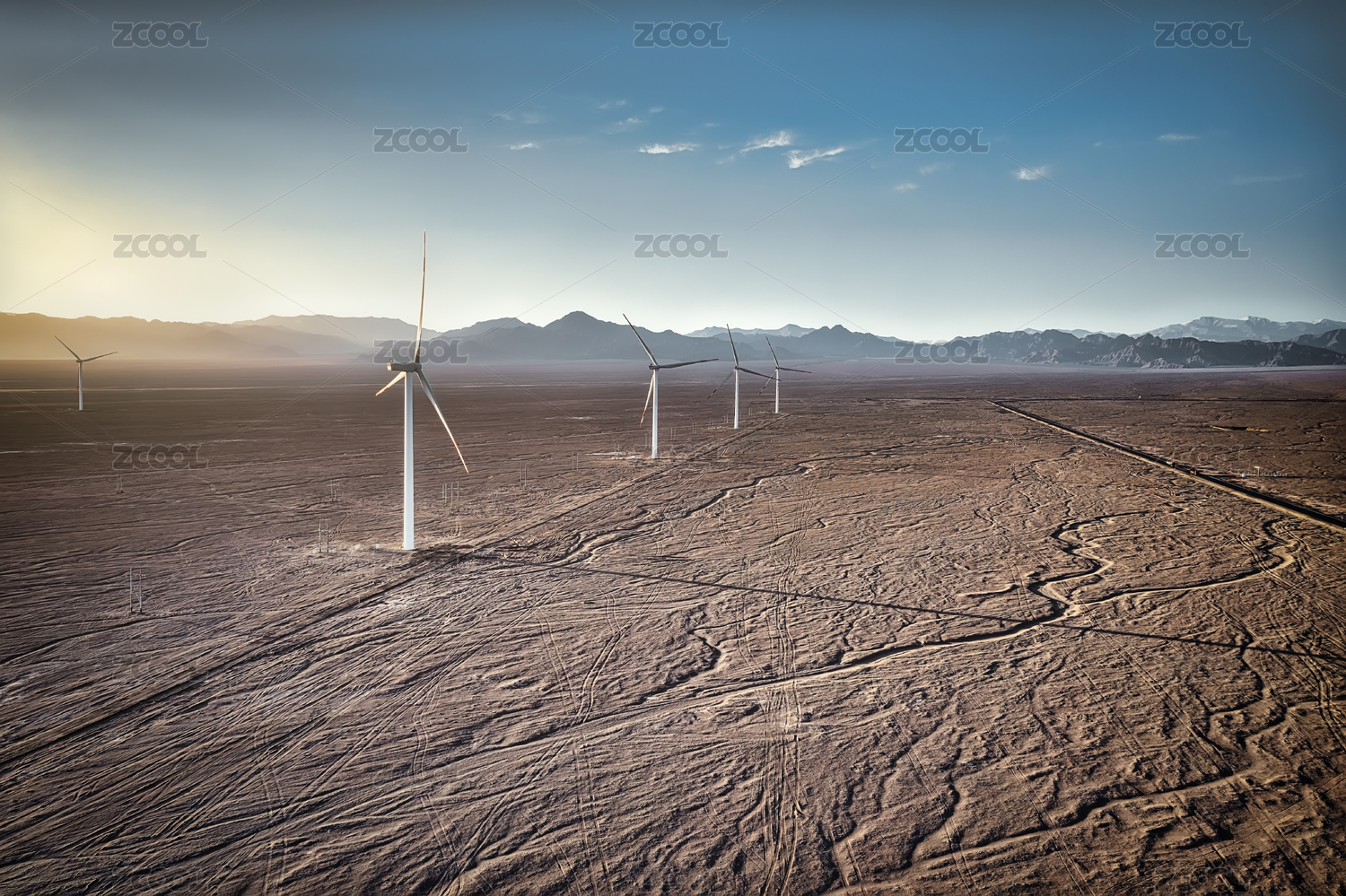 西北青海戈壁上的风力发电