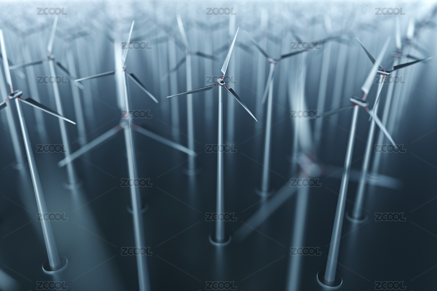 3d渲染 风力发电场景,环境能源可持续发展,绿色能源的创意概念
