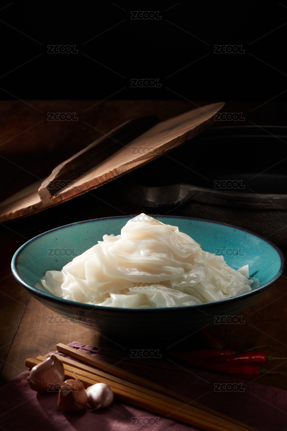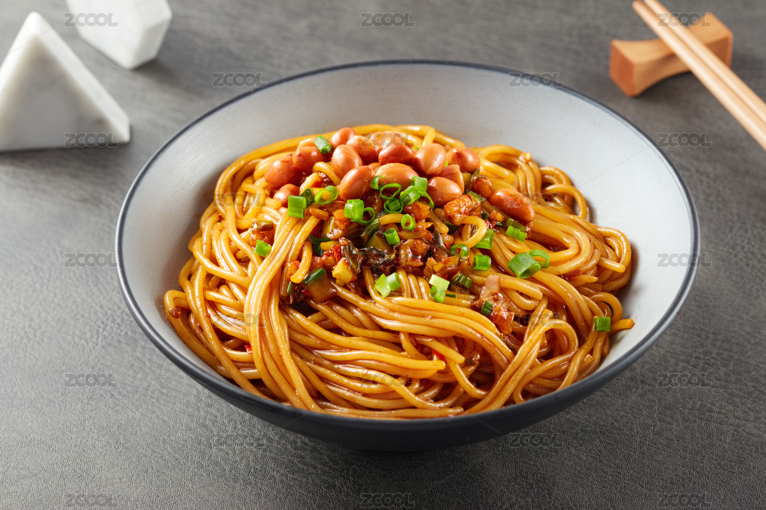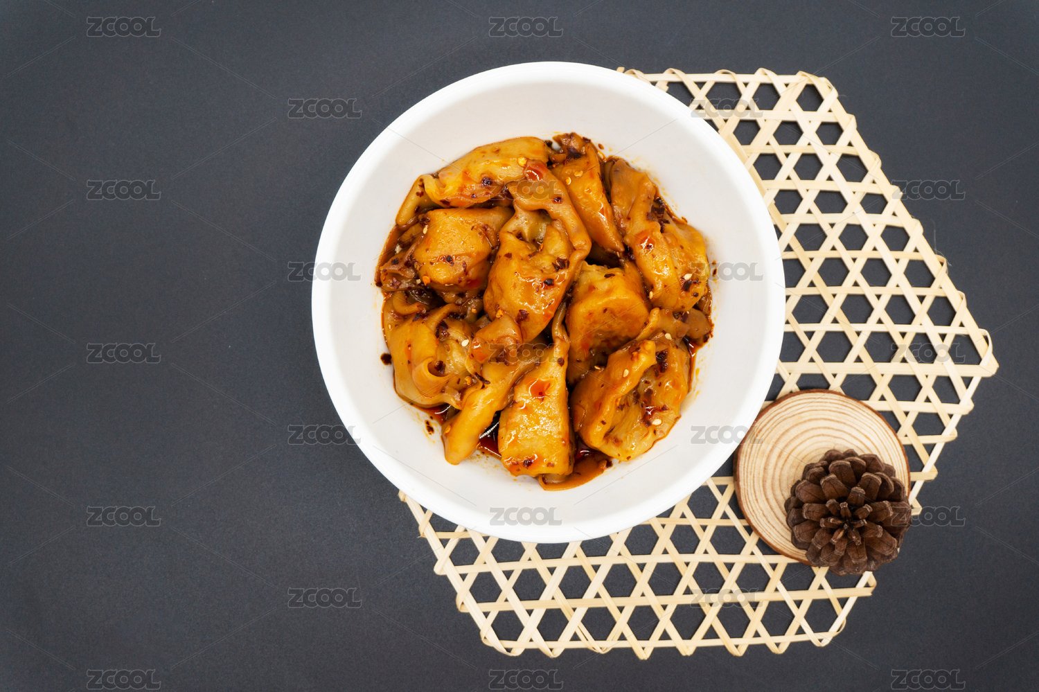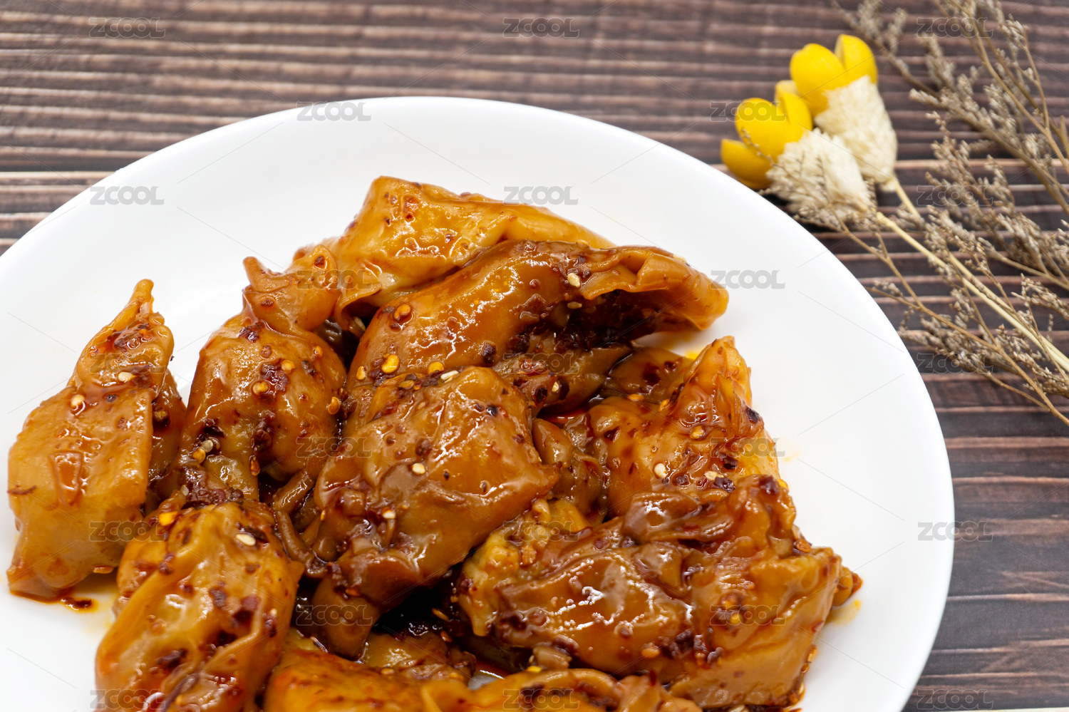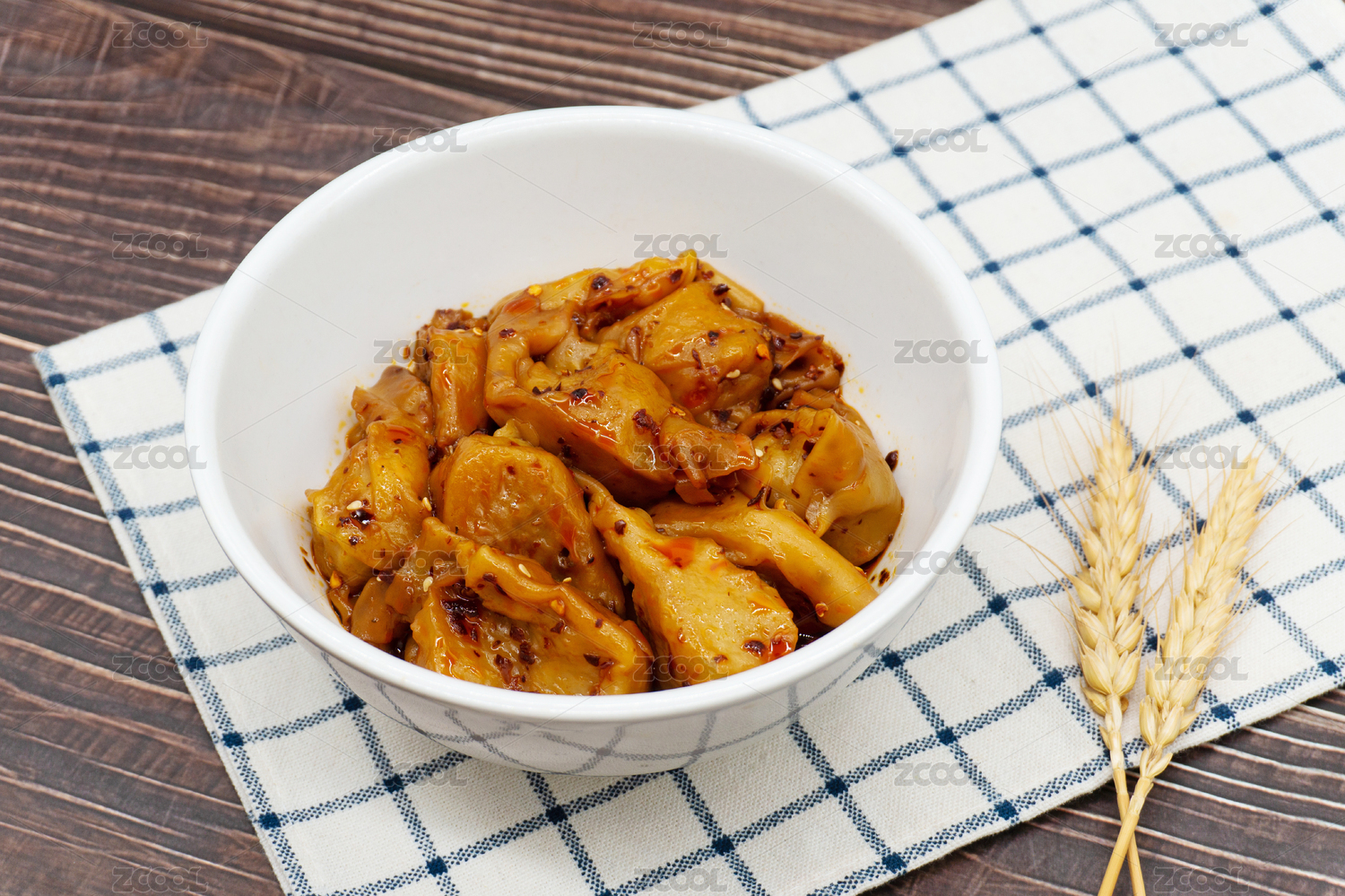 木桌背景干拌红油抄手