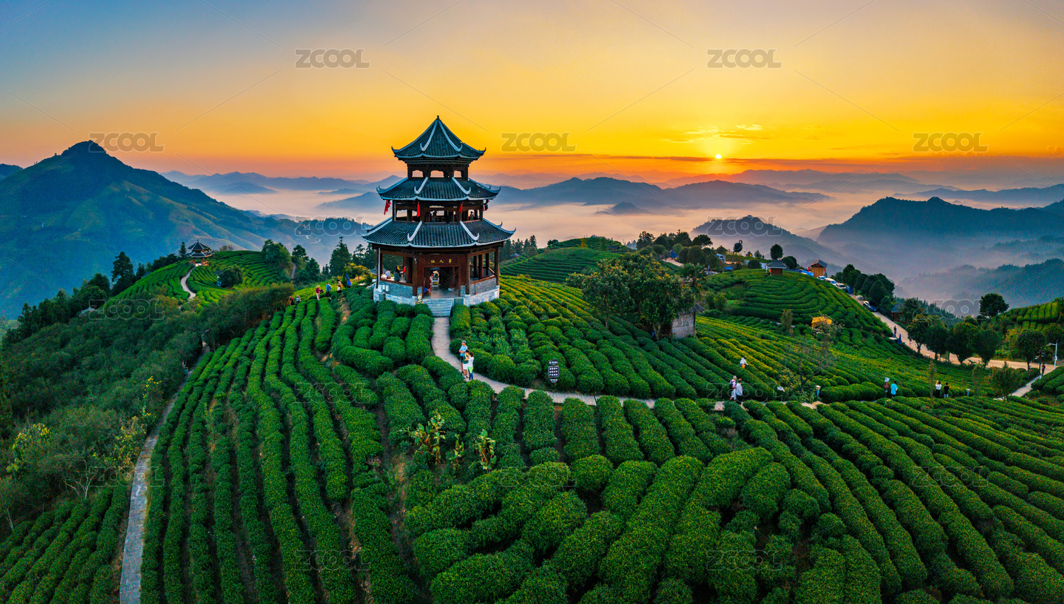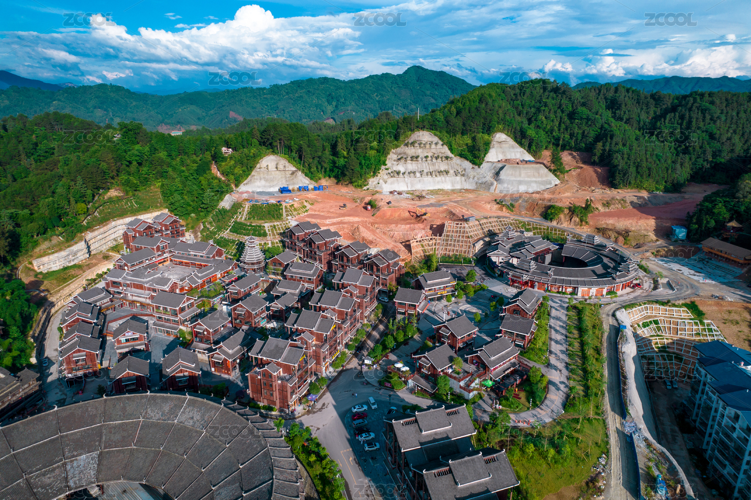 广西柳州三江县侗族鼓楼凉亭和木房子
