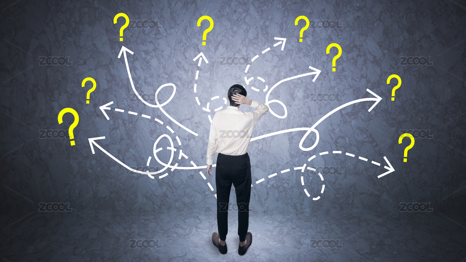 商务人士职场感觉思绪思路很乱问号不知所措抉择选择判断概念
