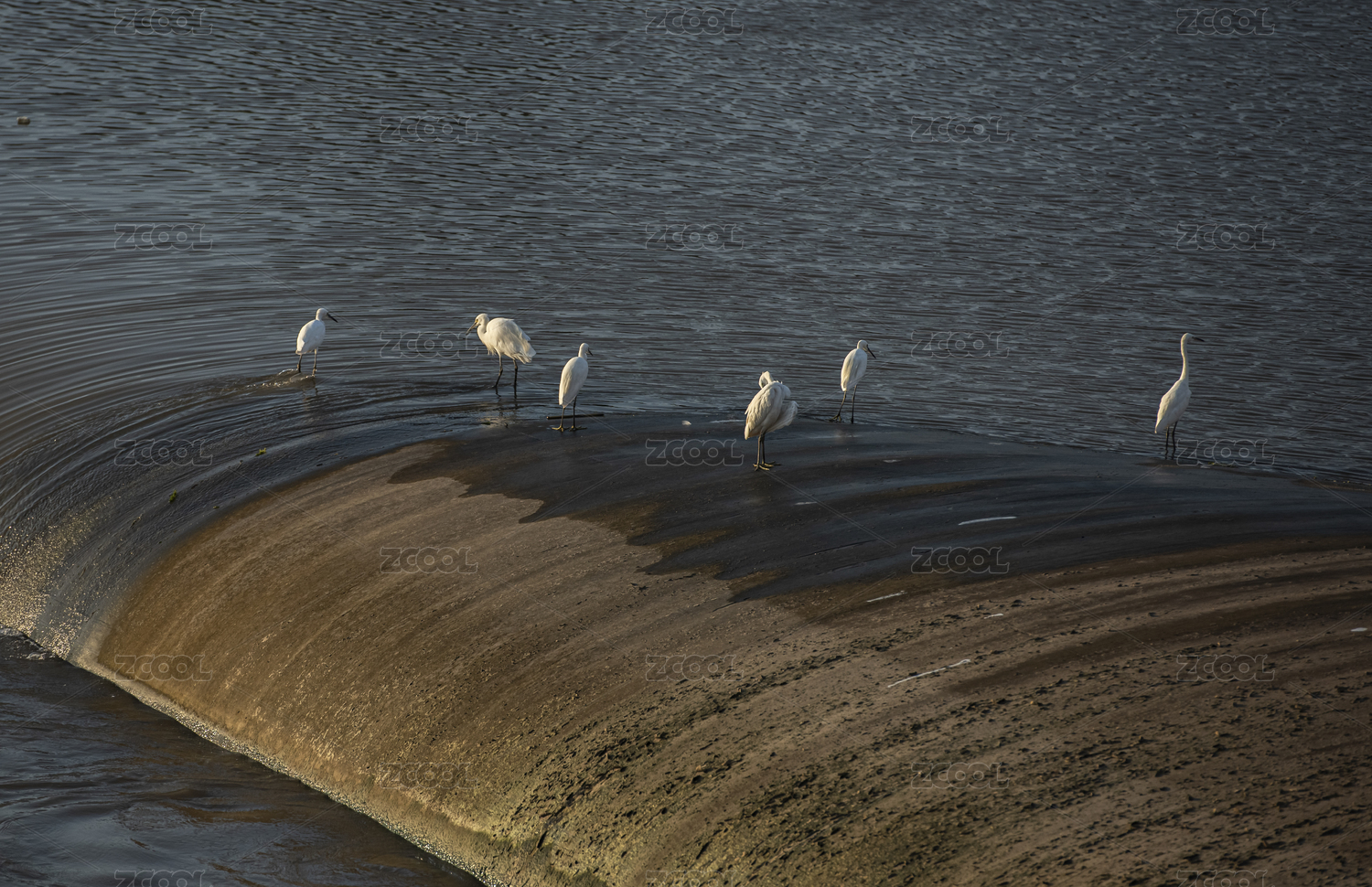 湖面群鸟戏水图