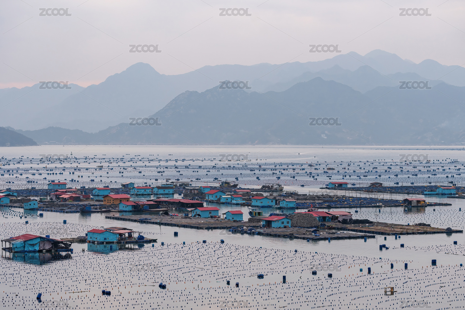 福建宁德霞浦东壁三沙码头平静海上养殖场