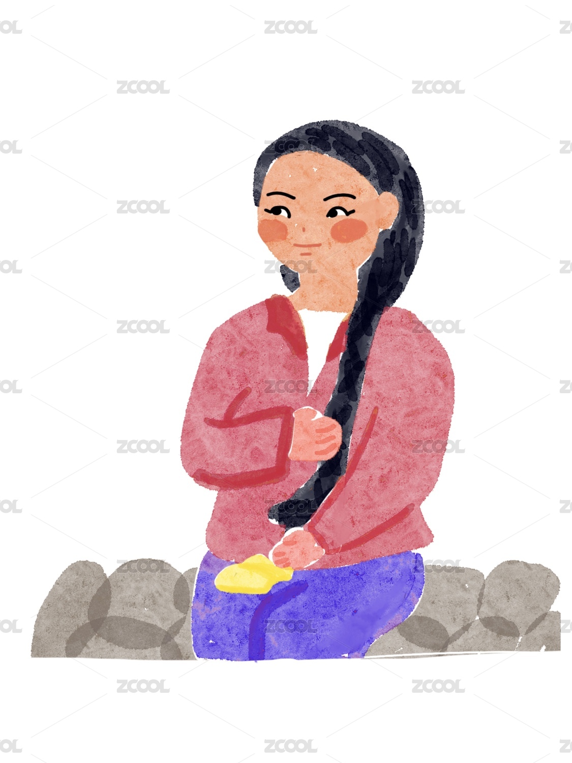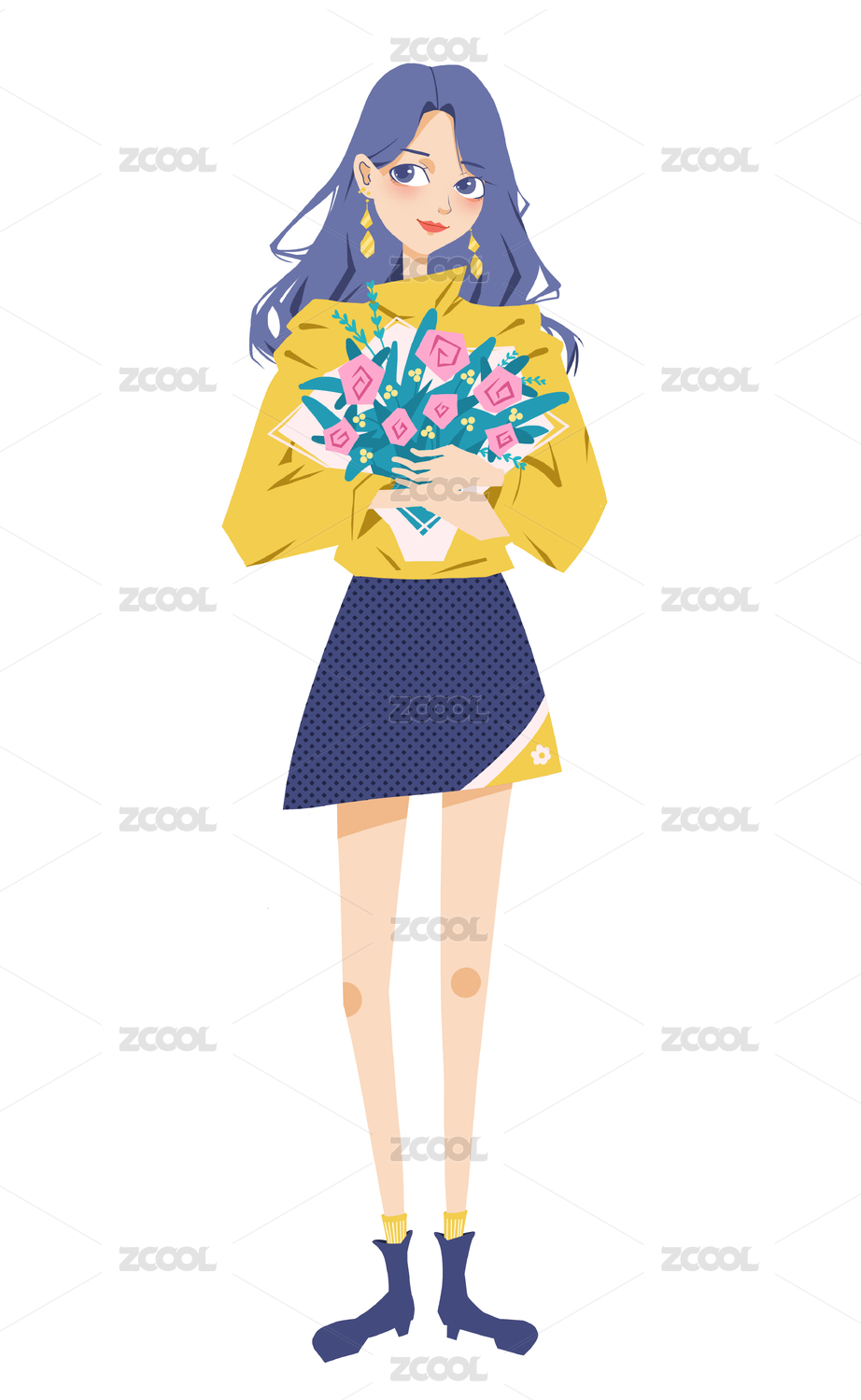 抱着花朵的女孩漫画人物设计插画