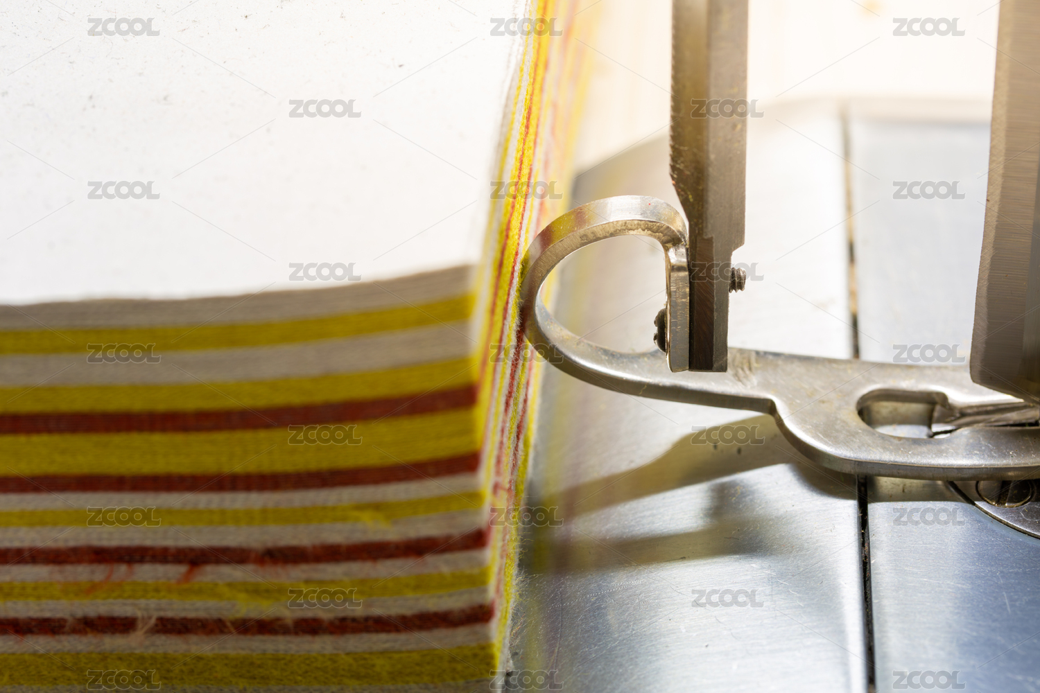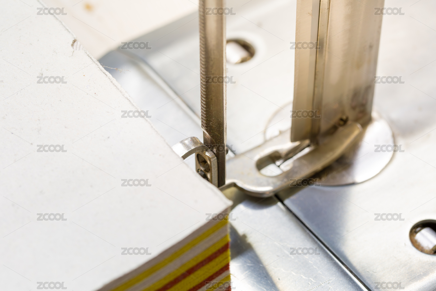 传统老式缝纫机缝制蓝布花纹蓝印花布手工艺