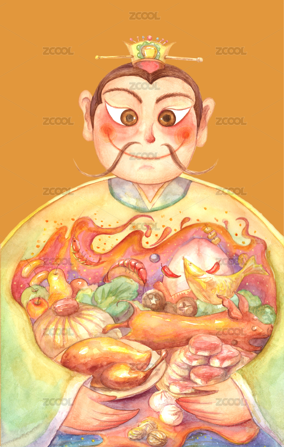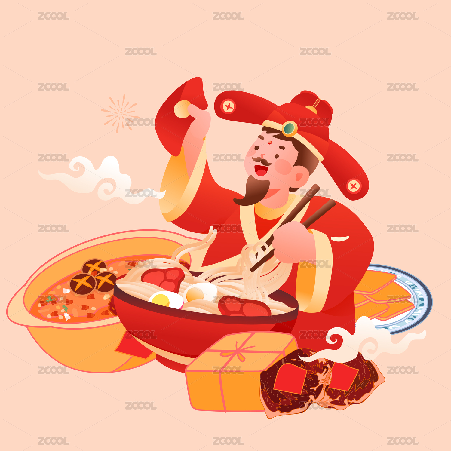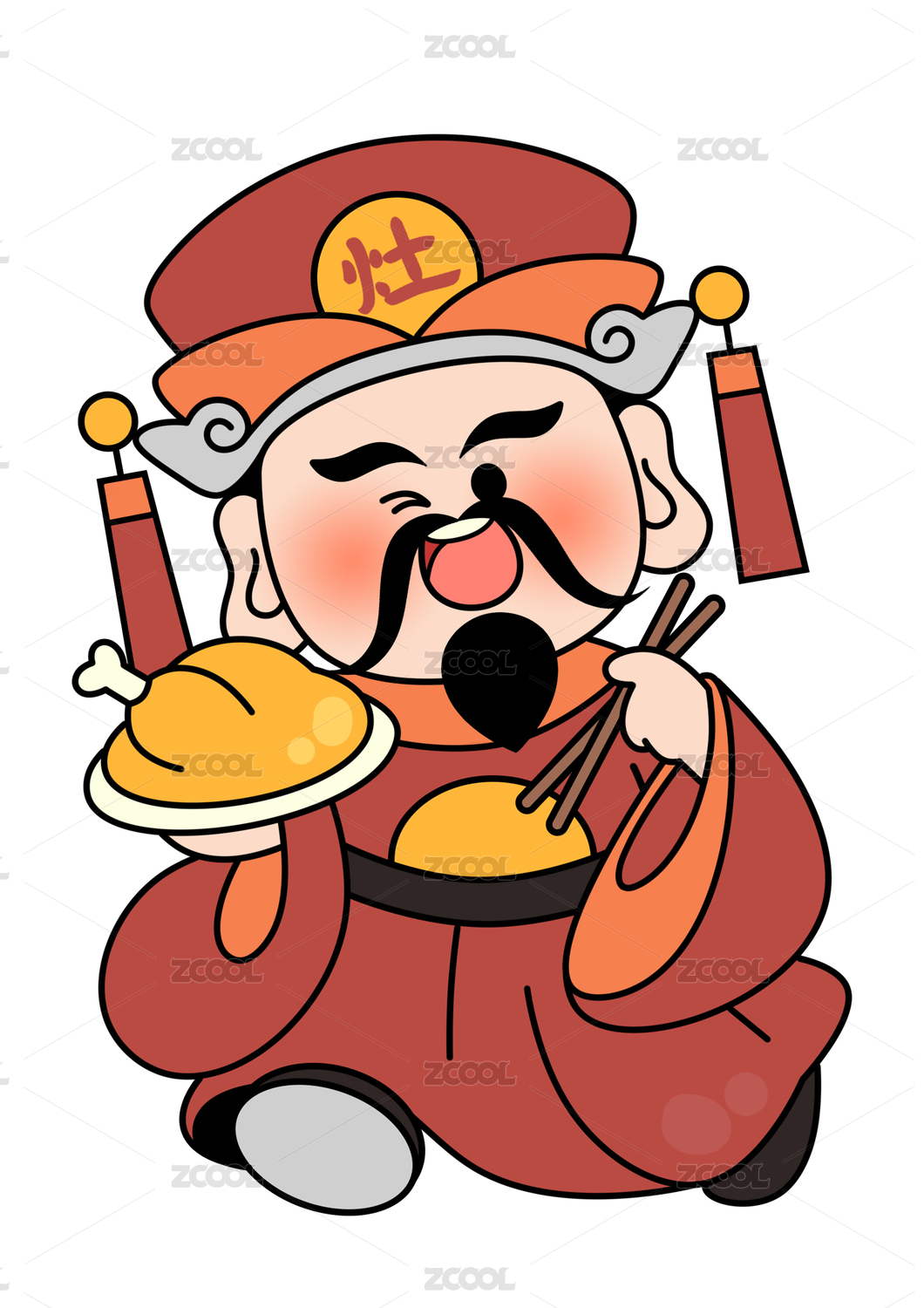 灶神吃饭美食矢量插画