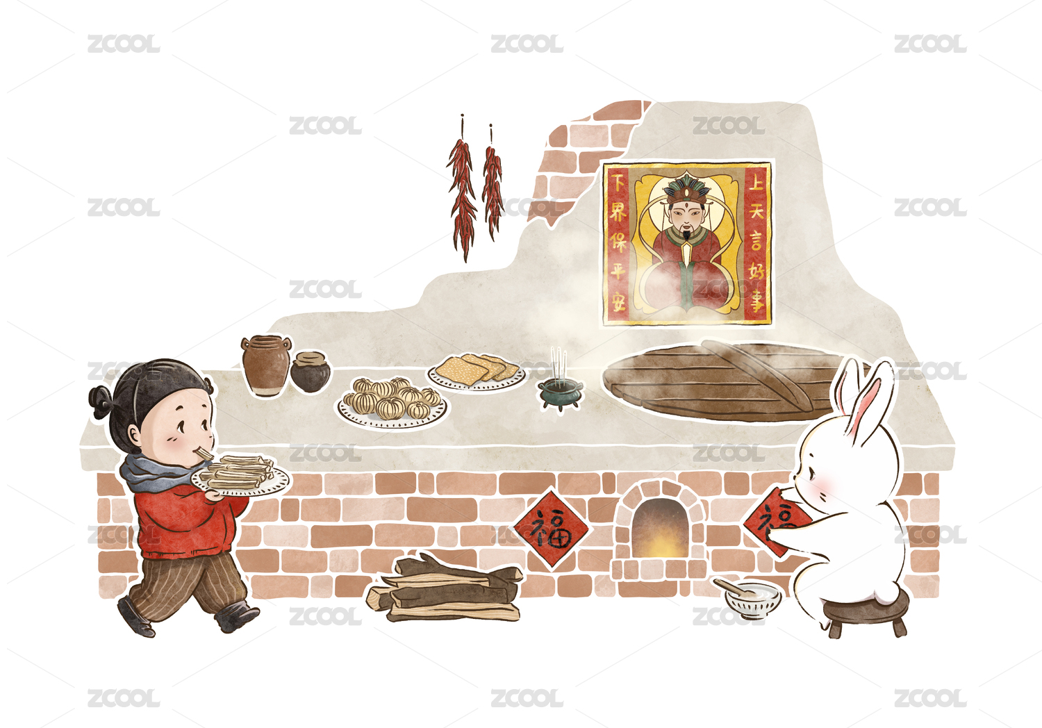 龙年灶神插画