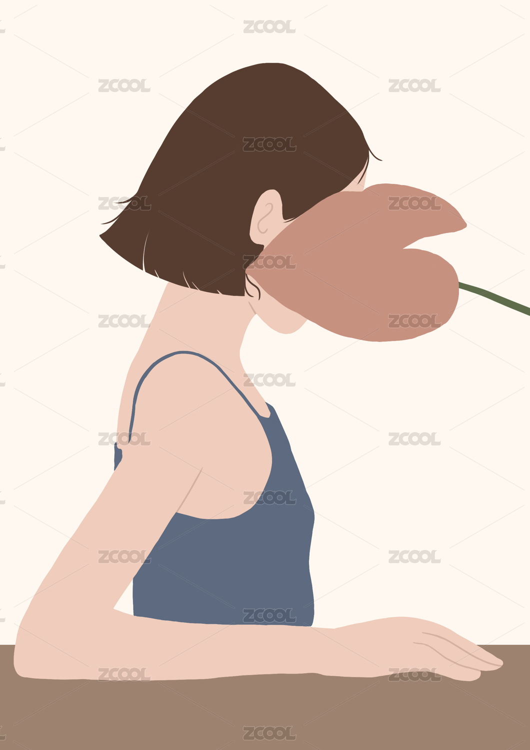 少女人像唯美治愈时尚插画