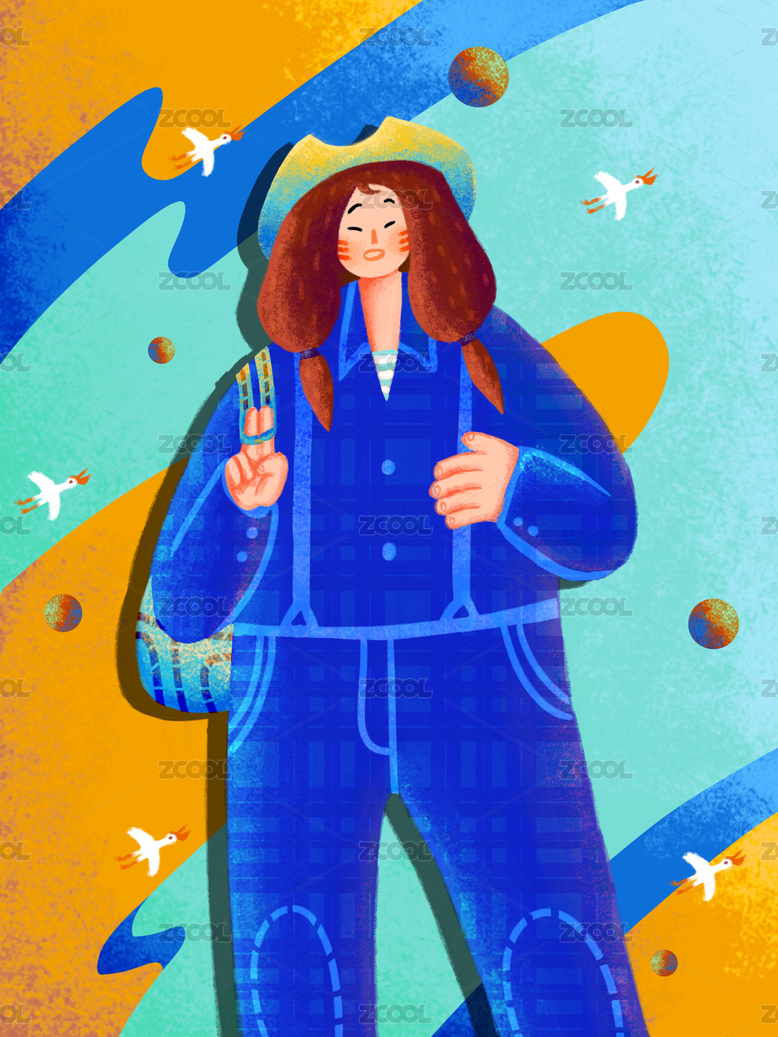假期余韵时尚插画
