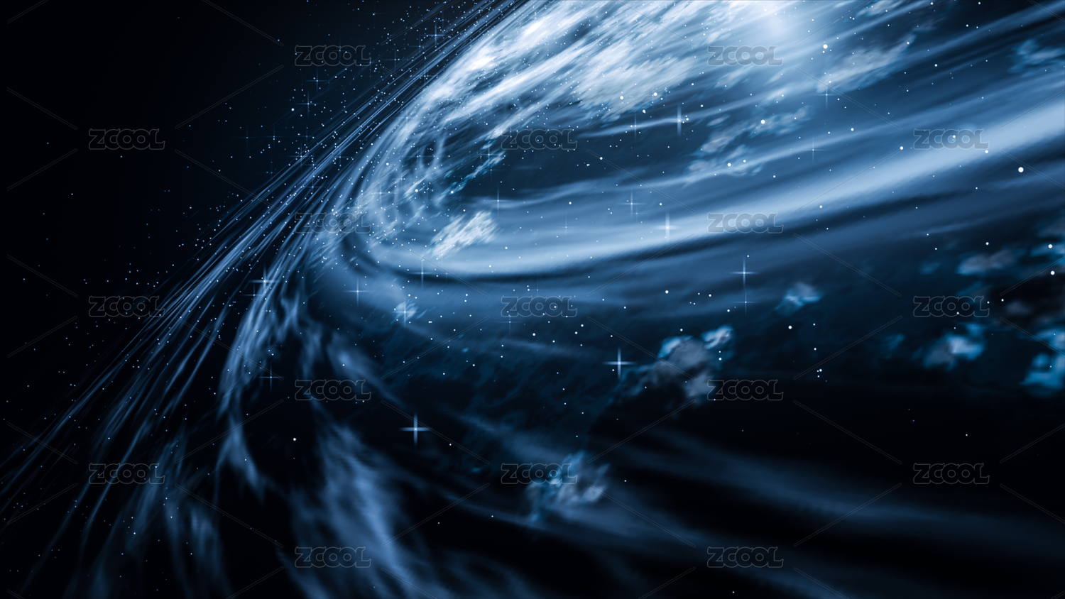 蓝色科幻背景,星云与漩涡