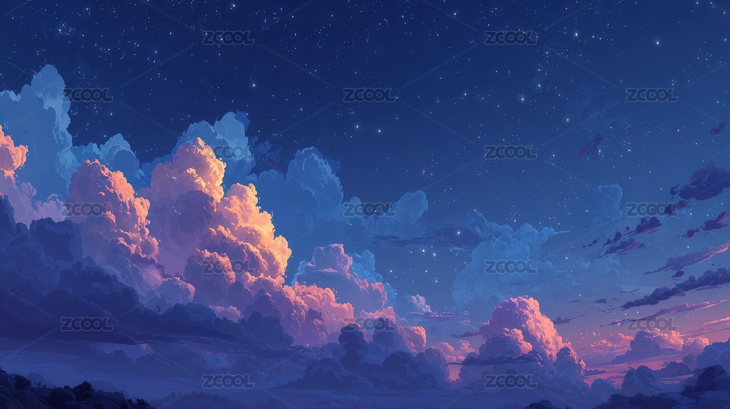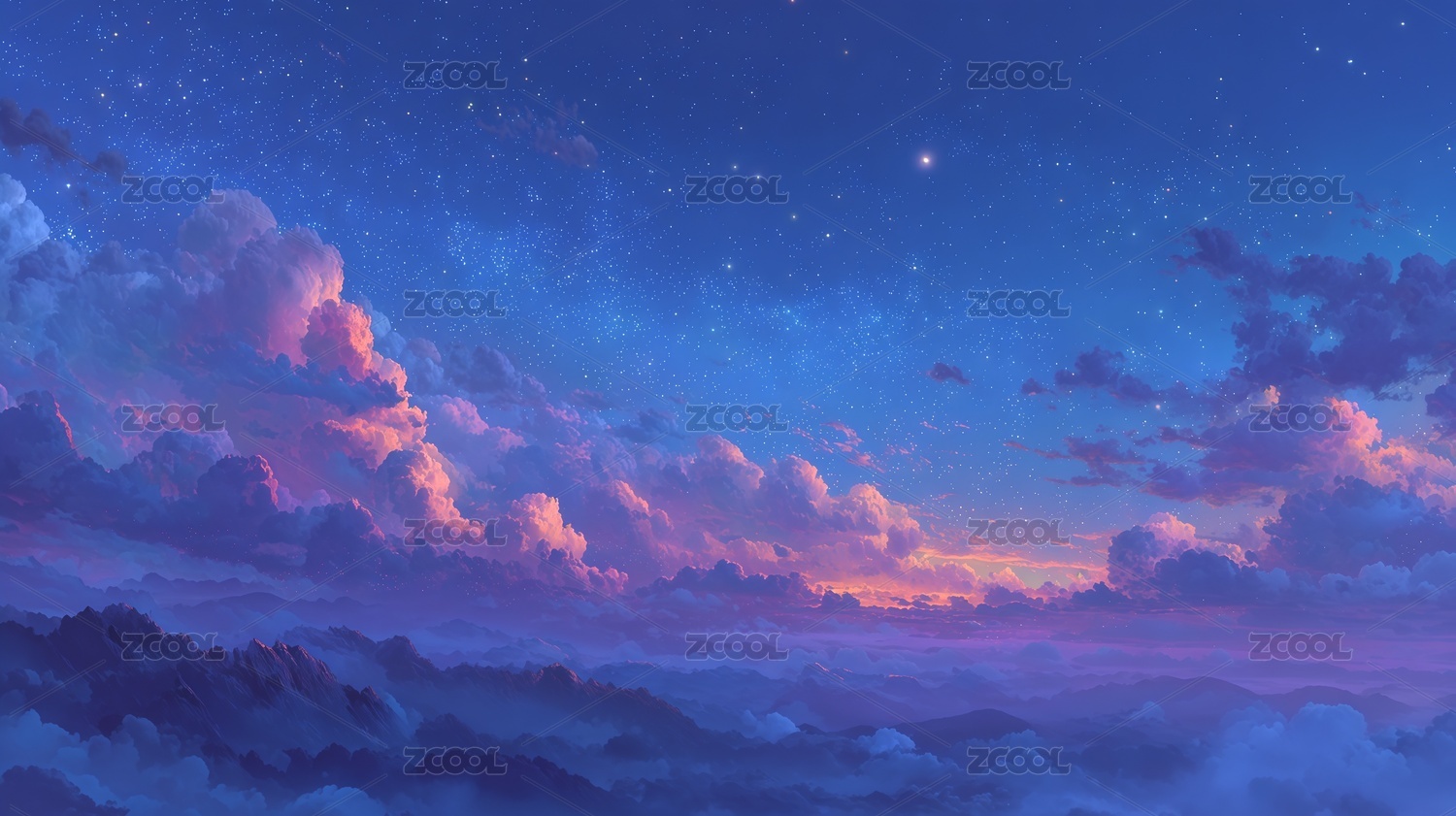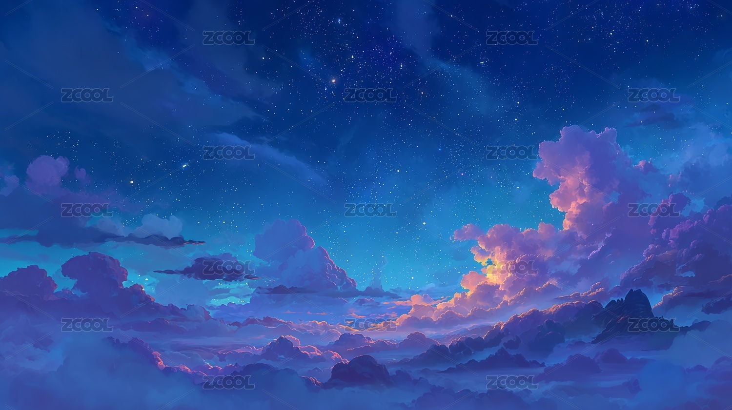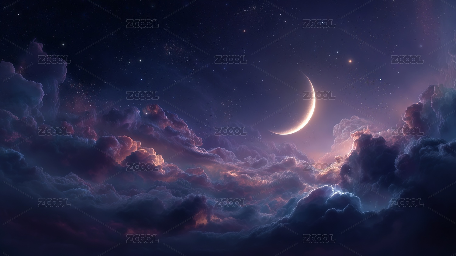 梦幻天空星云流星月亮背景