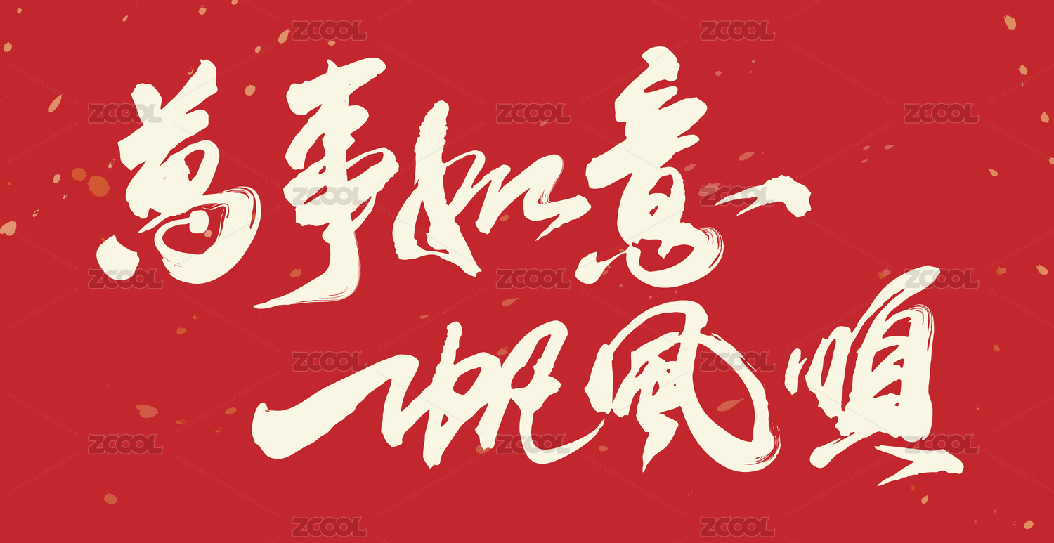 中国书法手写万事如意毛笔字的矢量图