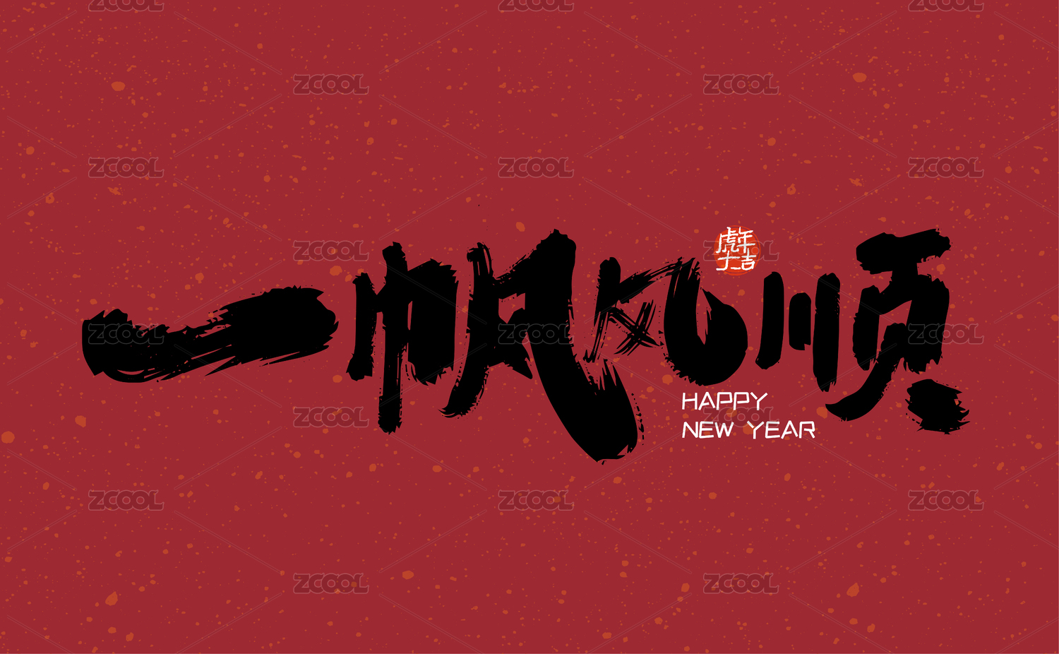 一帆风顺原创字体新春祝福语矢量插画