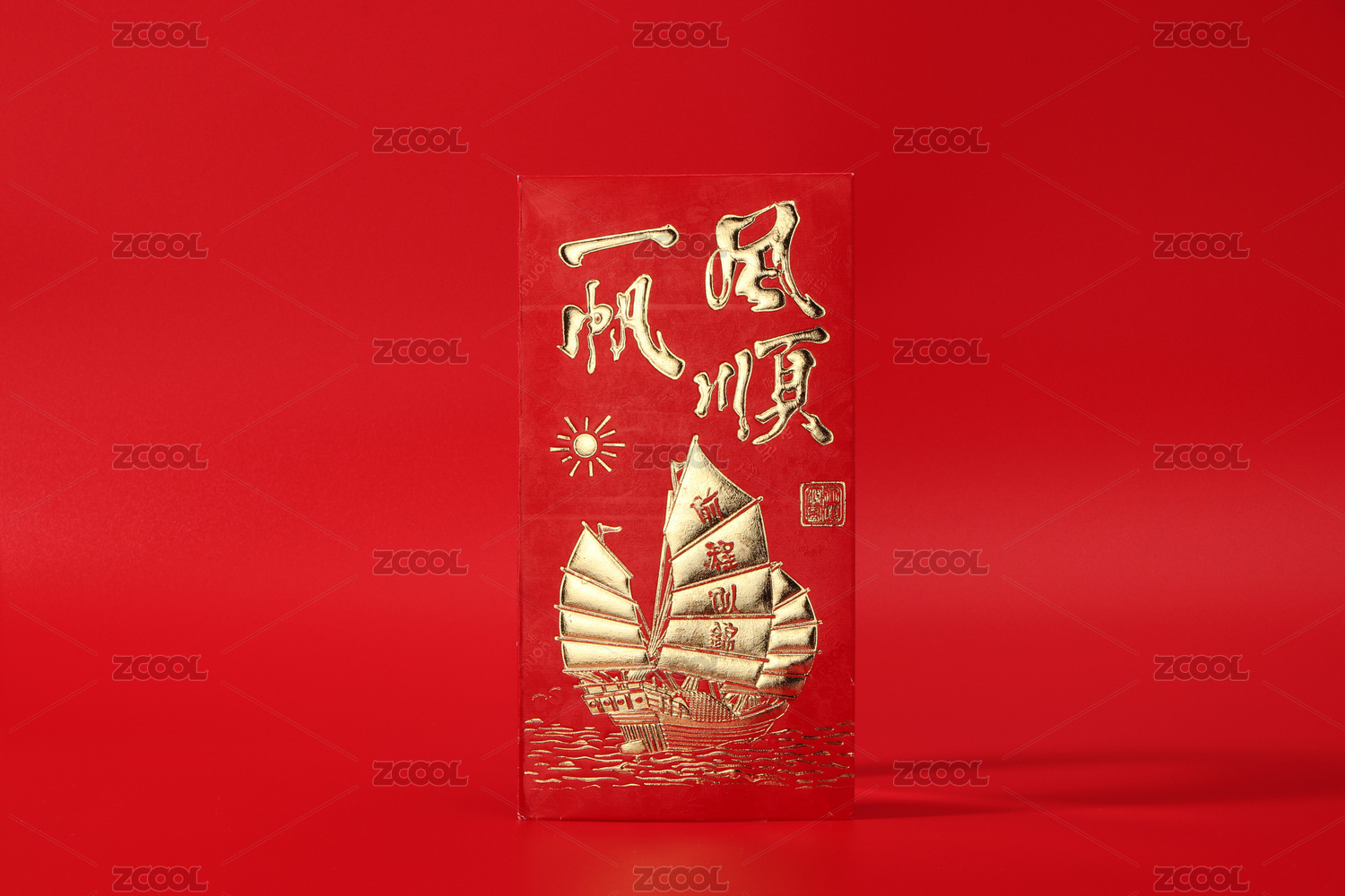 春节红色背景下一帆风顺红包