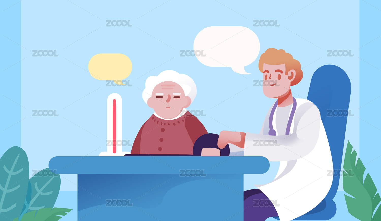 卡通手绘全国高血压日老人问诊医疗体检插画