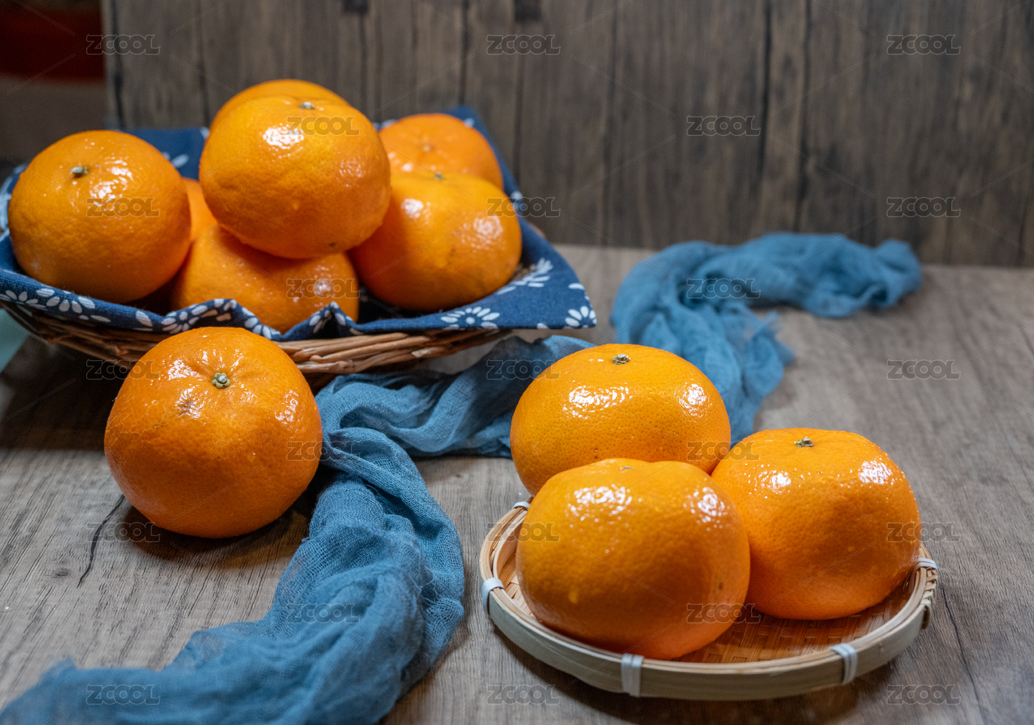 暗调静物摄影复古木质桌上的黄色桔子果盘