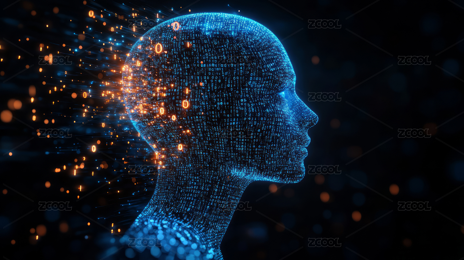 由蓝色二进制代码组成AI虚拟数字人
