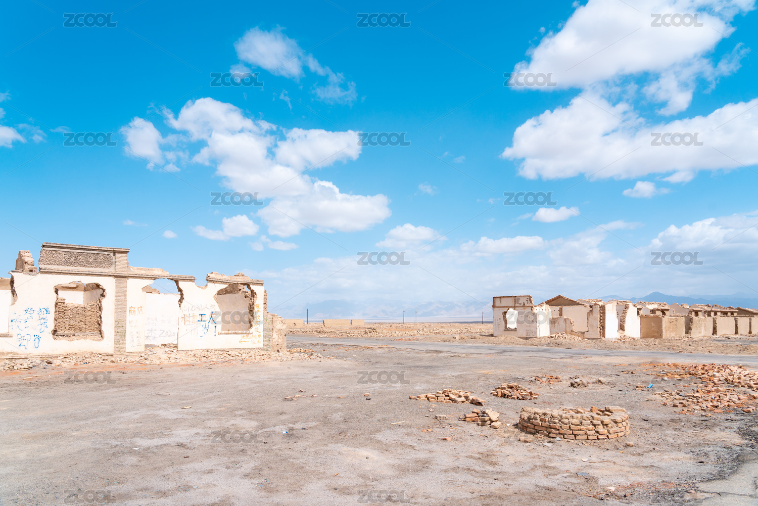 中国青海柴达木盆地冷湖石油废弃小镇风光