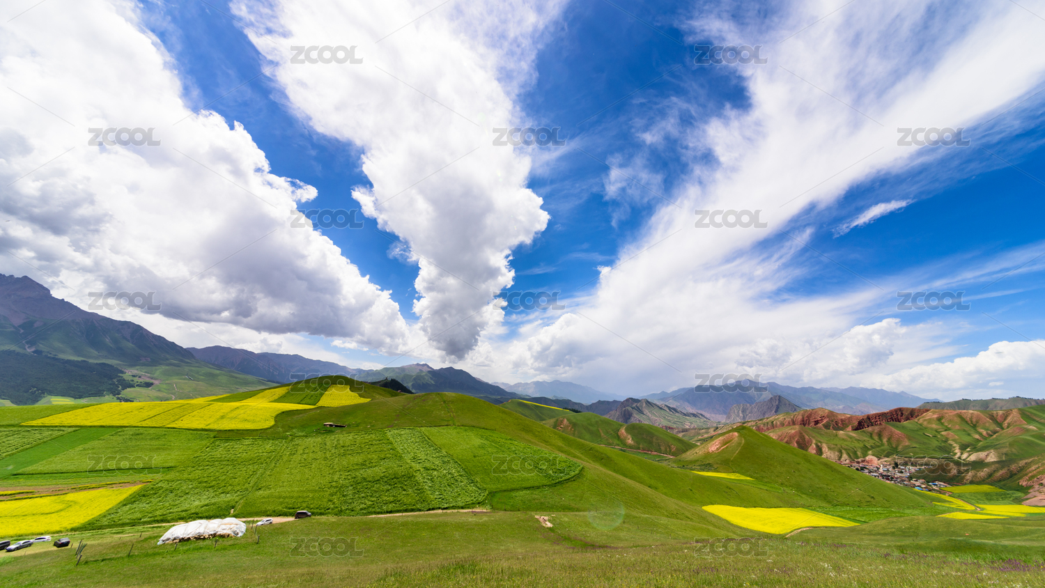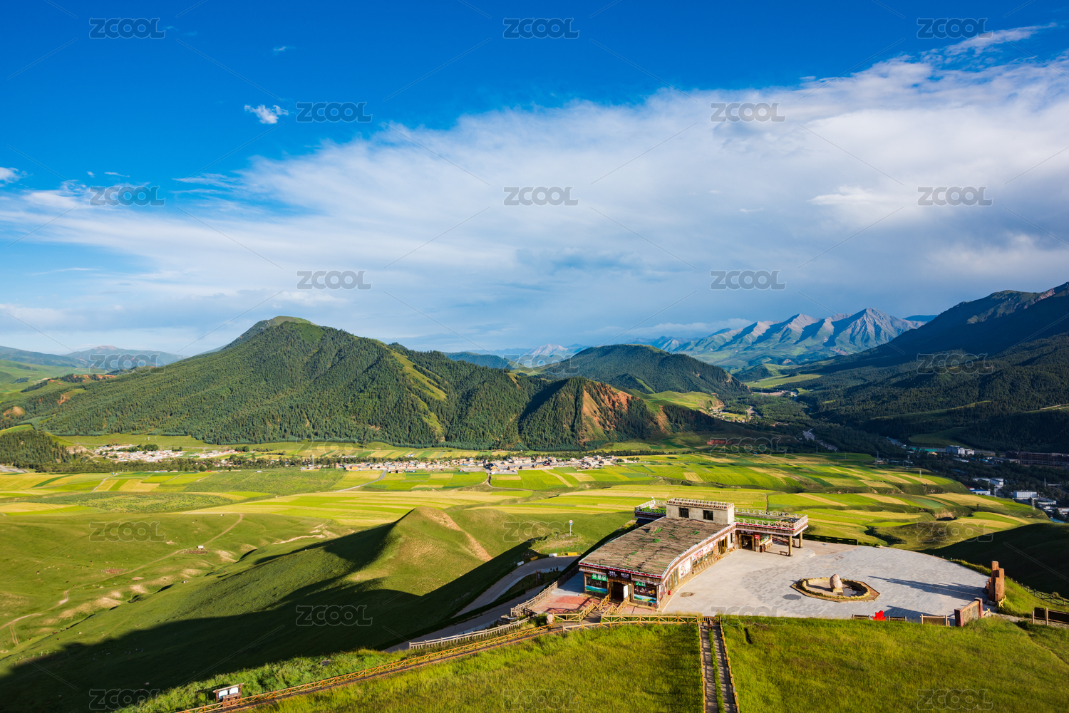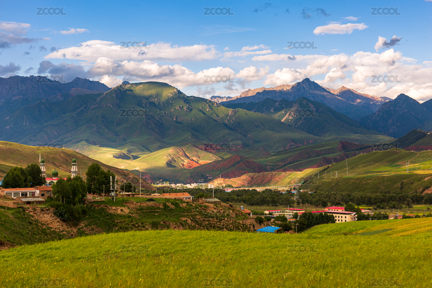 蓝天白云下的青海祁连卓尔山风景区