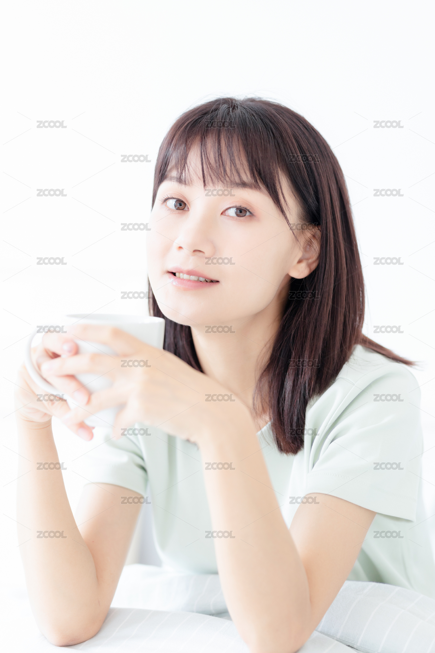 早起喝水的年轻女性