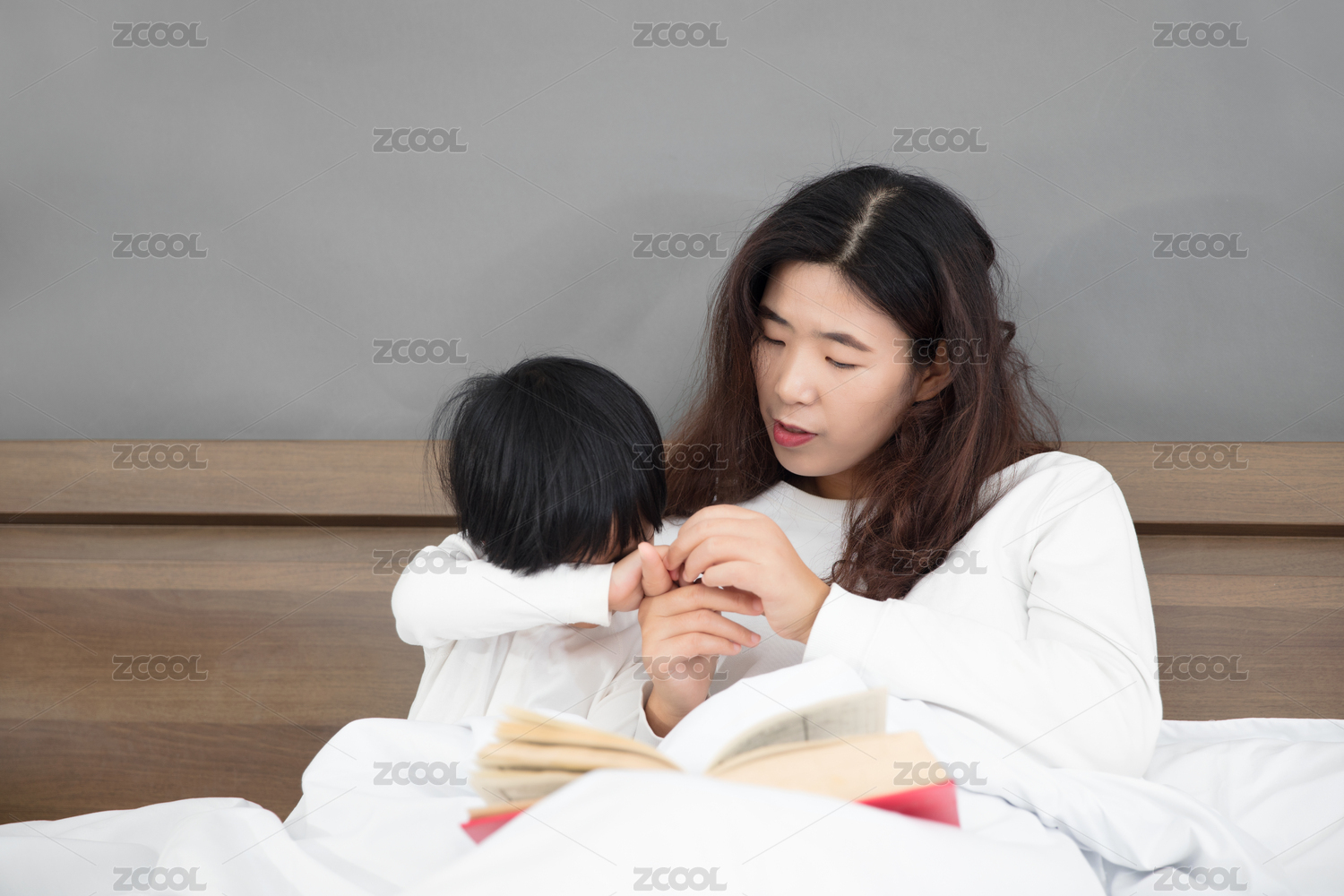床上早起的母女