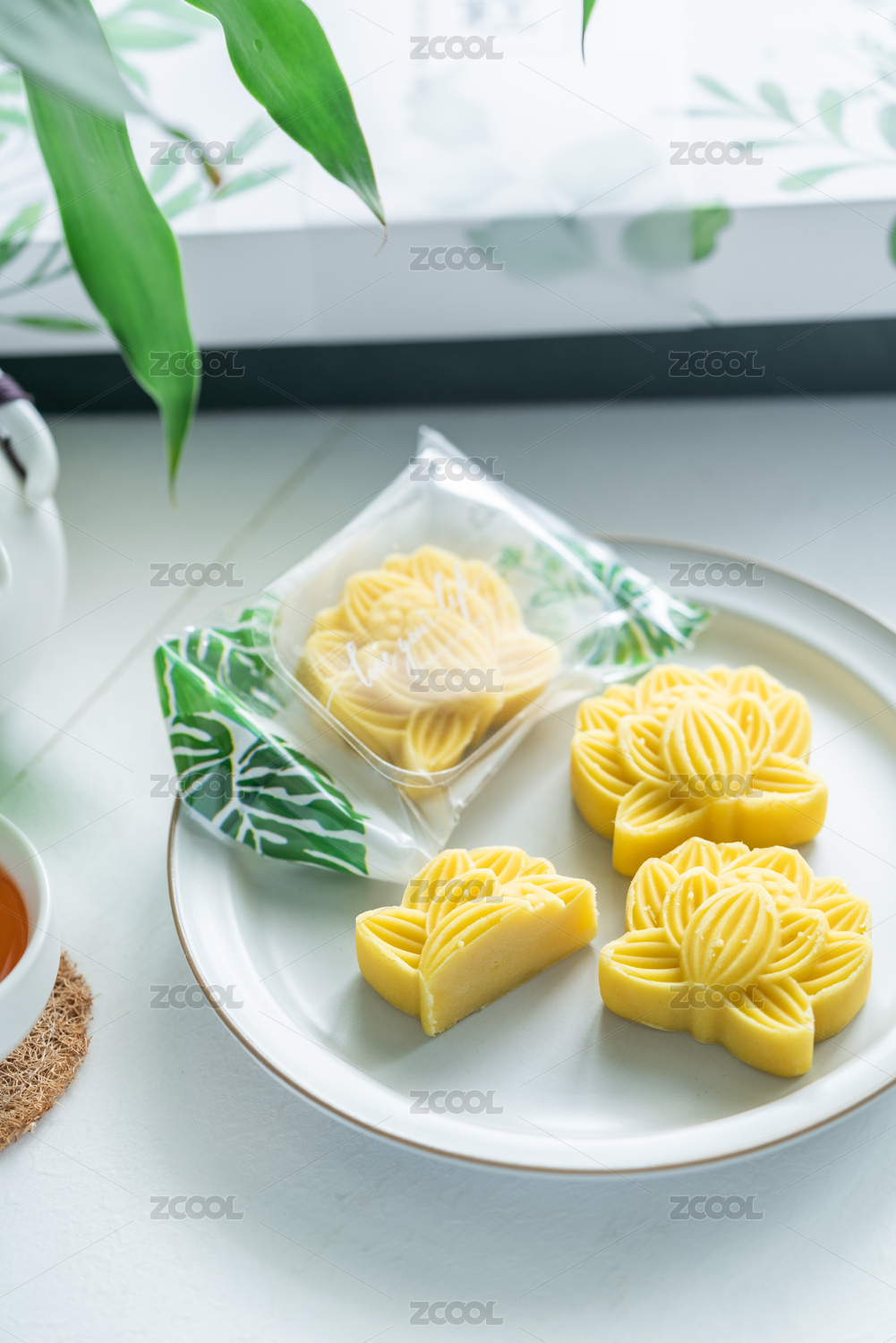 荷花形状的绿豆冰糕配红茶