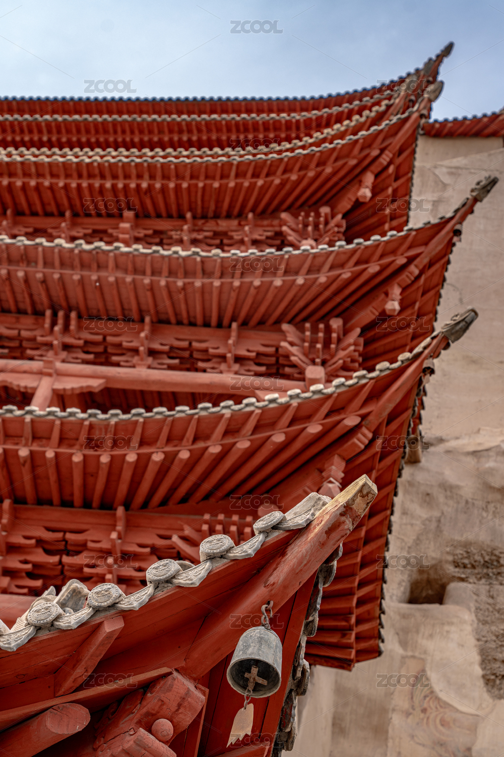中国甘肃敦煌莫高窟建筑九层楼远景
