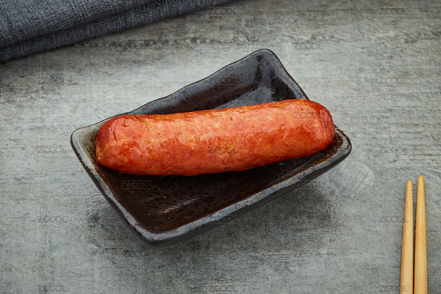 炸香肠放在黑色底板上