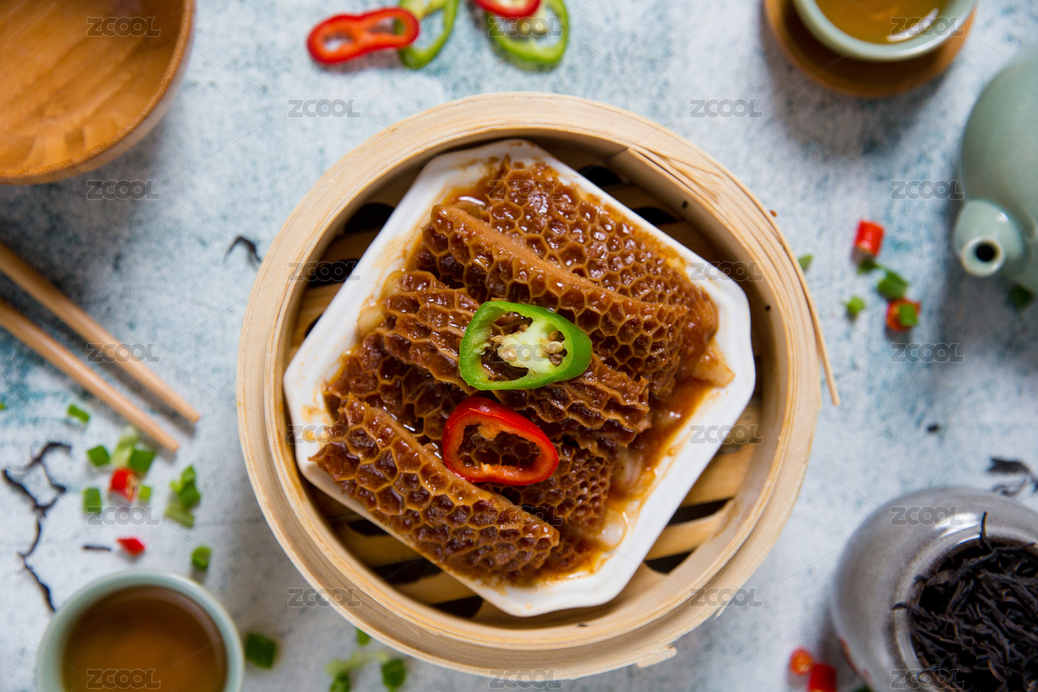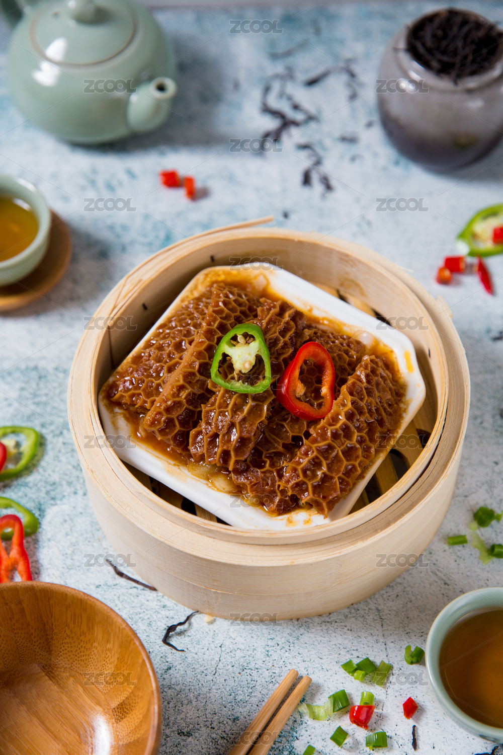 一蒸笼内一碟金钱肚