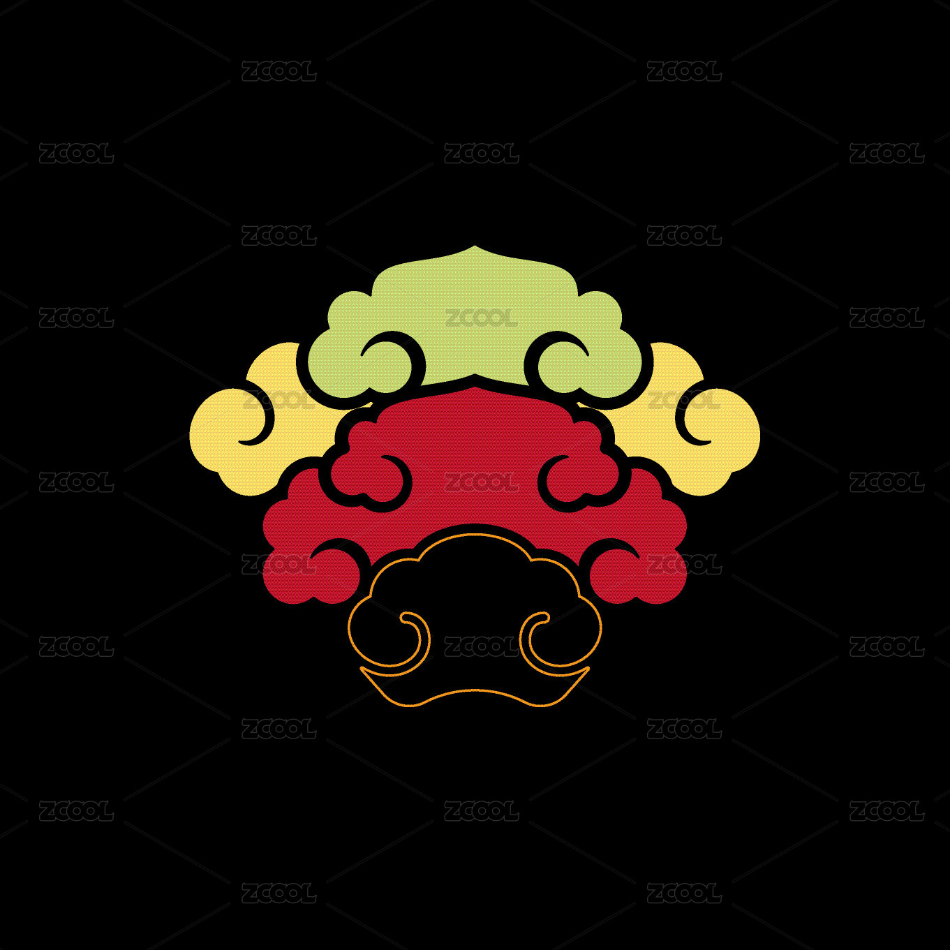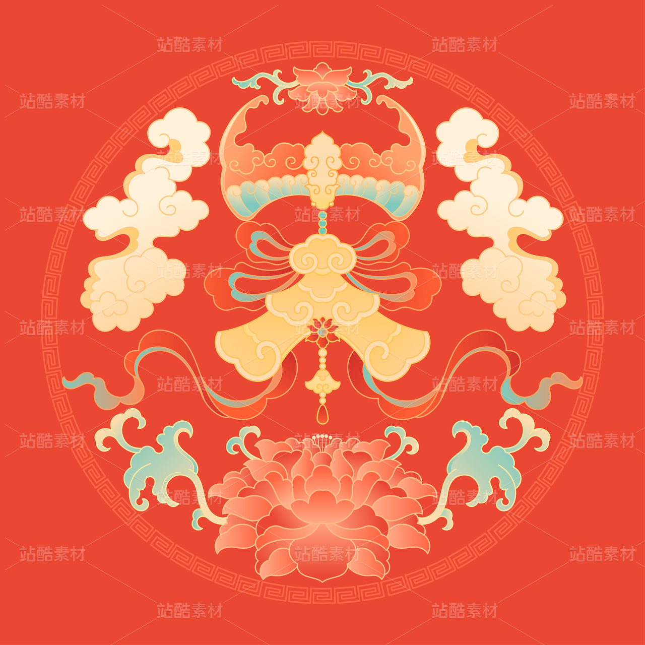 蝙蝠祥云磬纹牡丹花吉祥如意纹样国潮插画