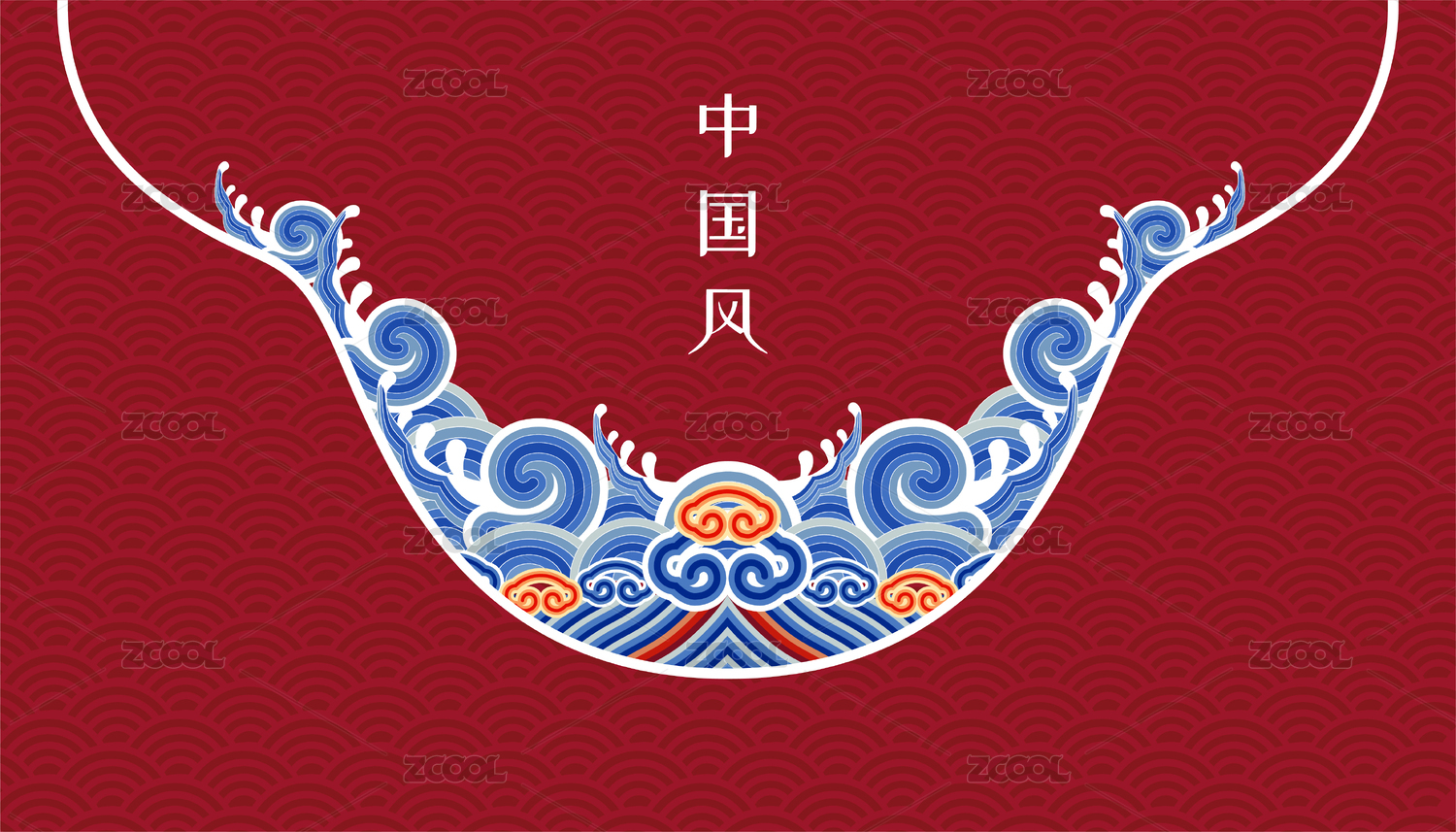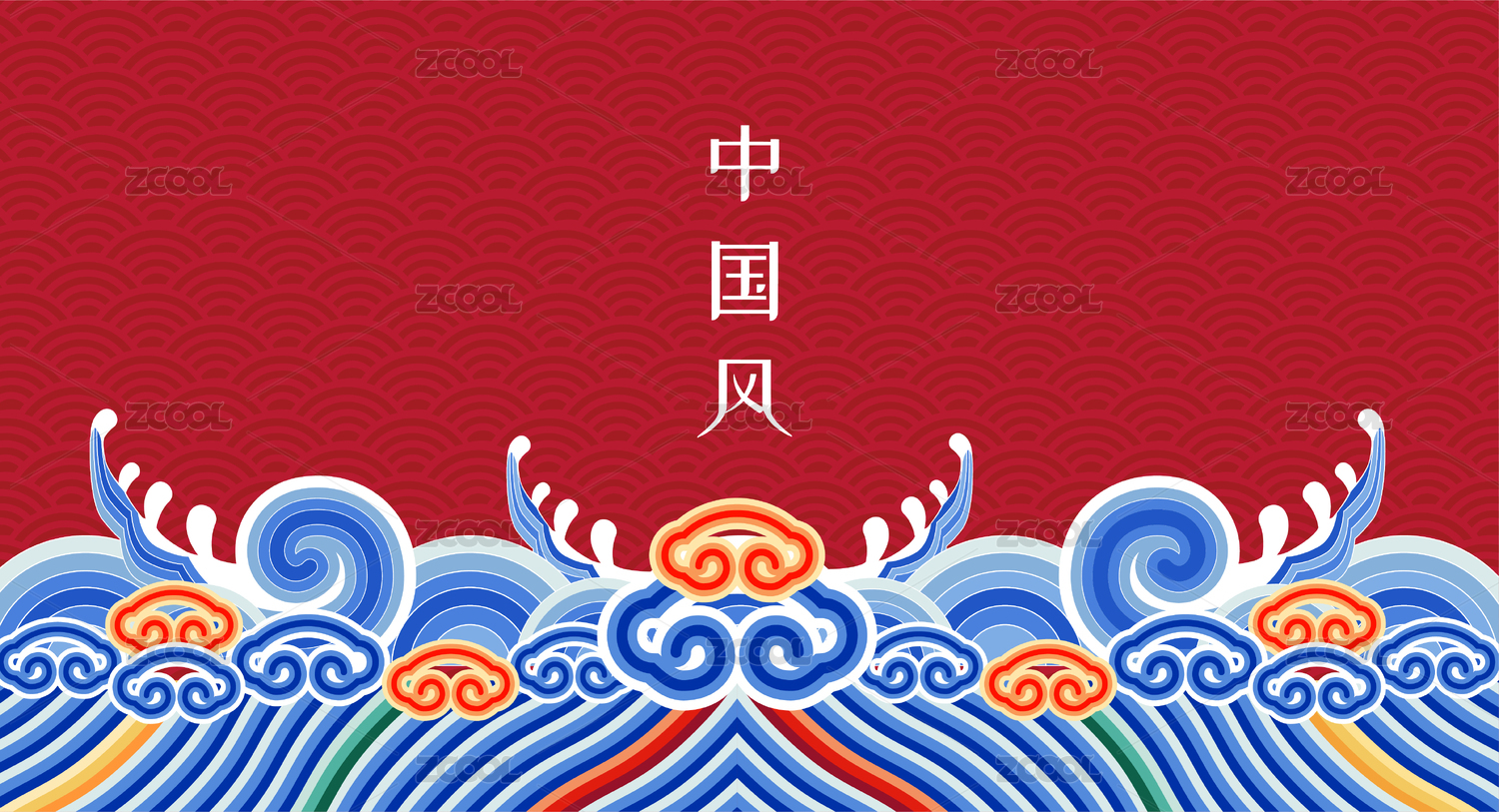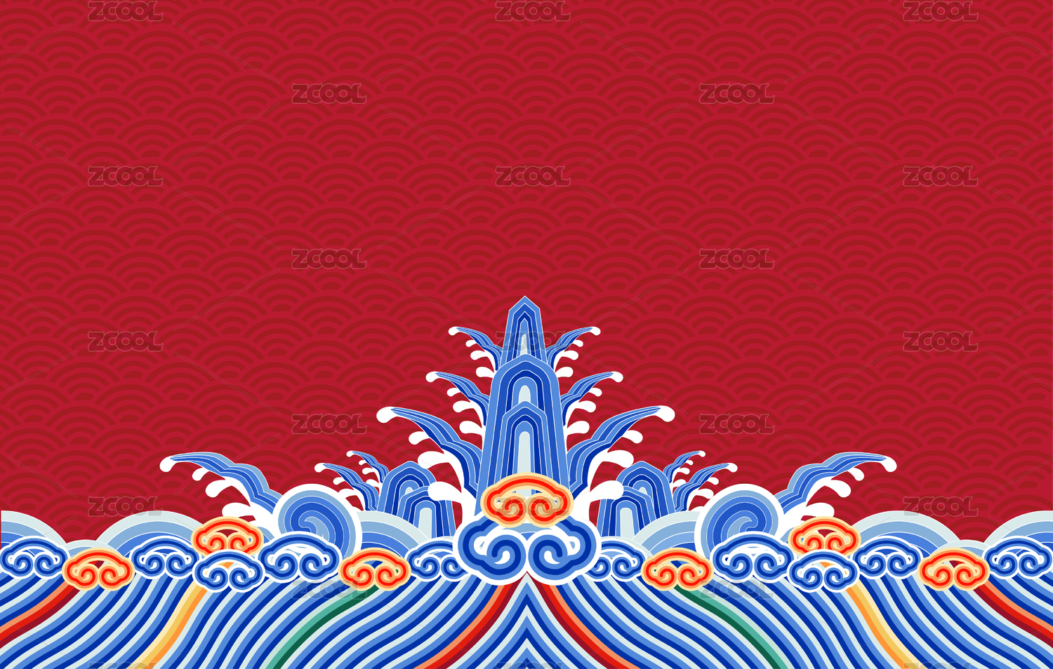 中国皇家服饰图案海水江崖波浪纹如意纹红底