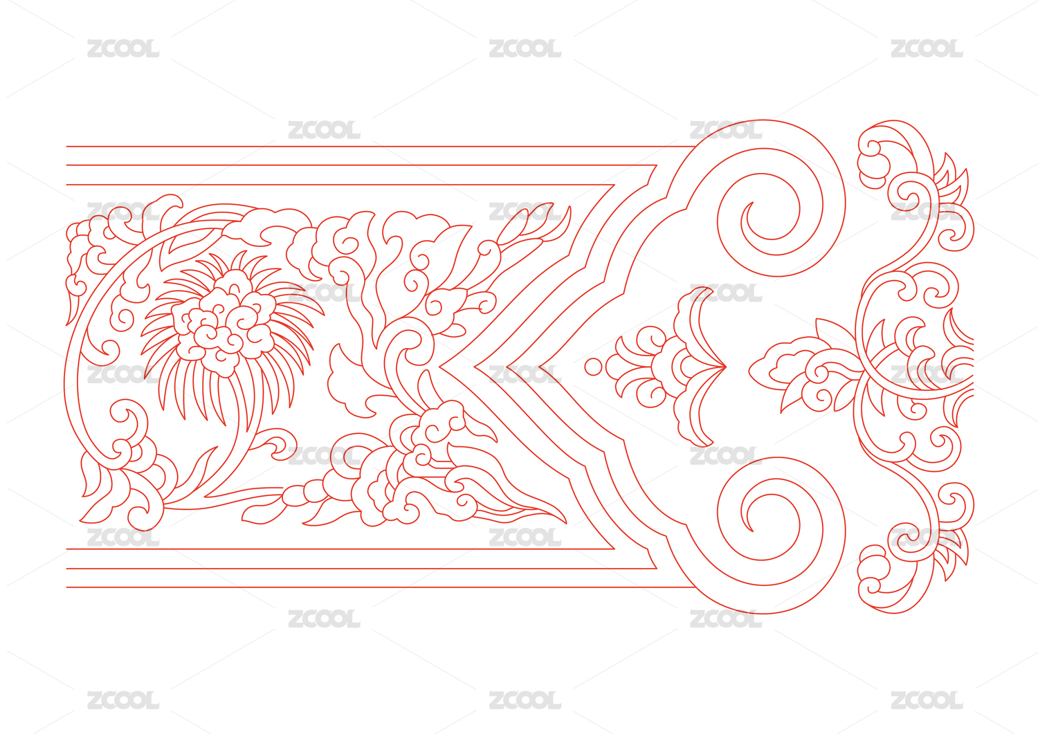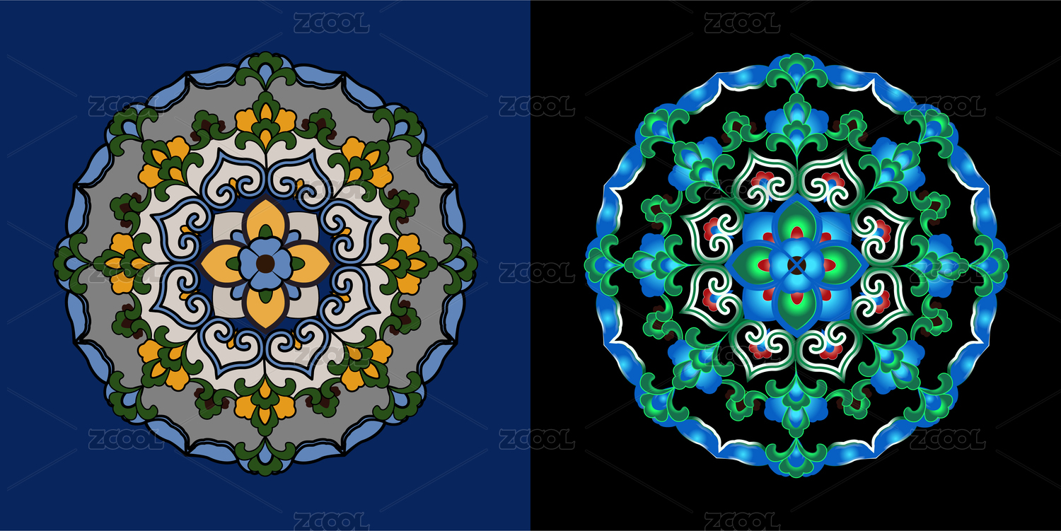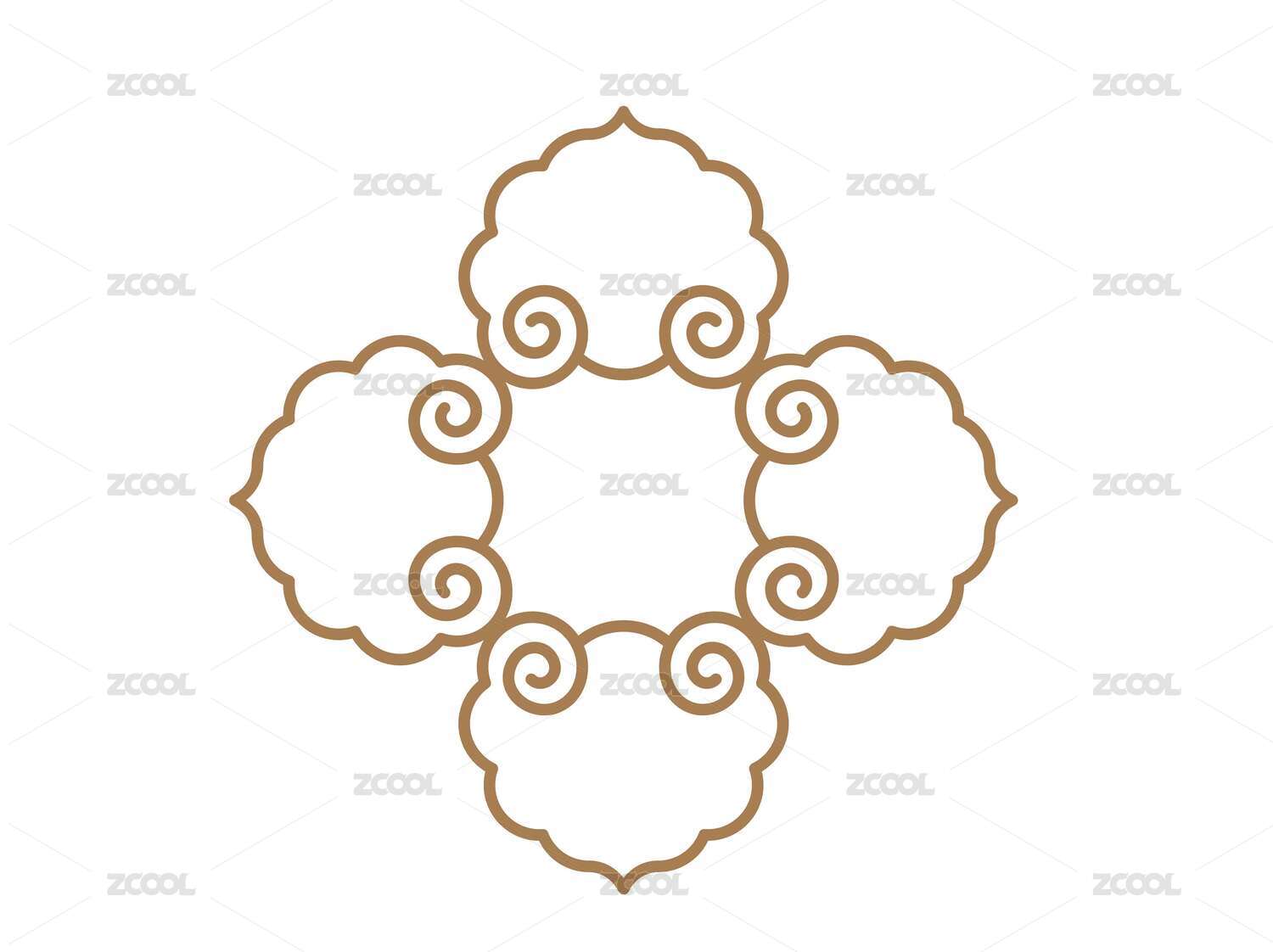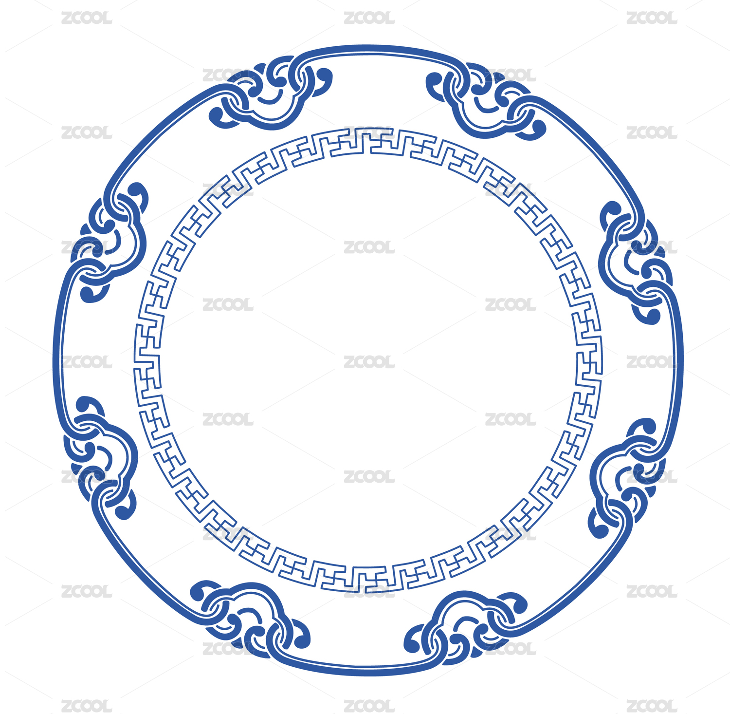中国古典边框-圆形如意纹回纹万字纹装饰图案