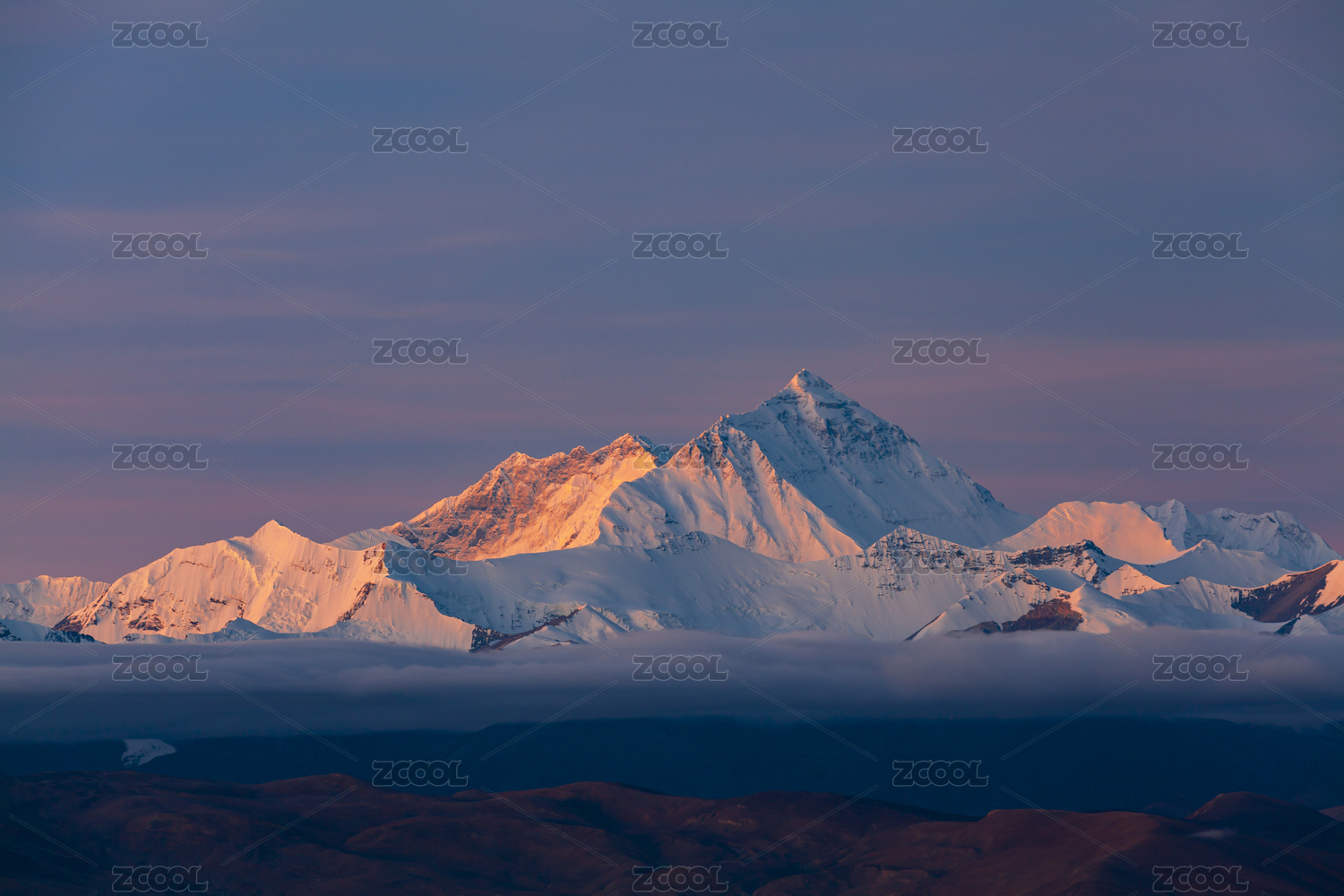 中国西藏喜马拉雅山脉珠穆朗玛峰日照金山