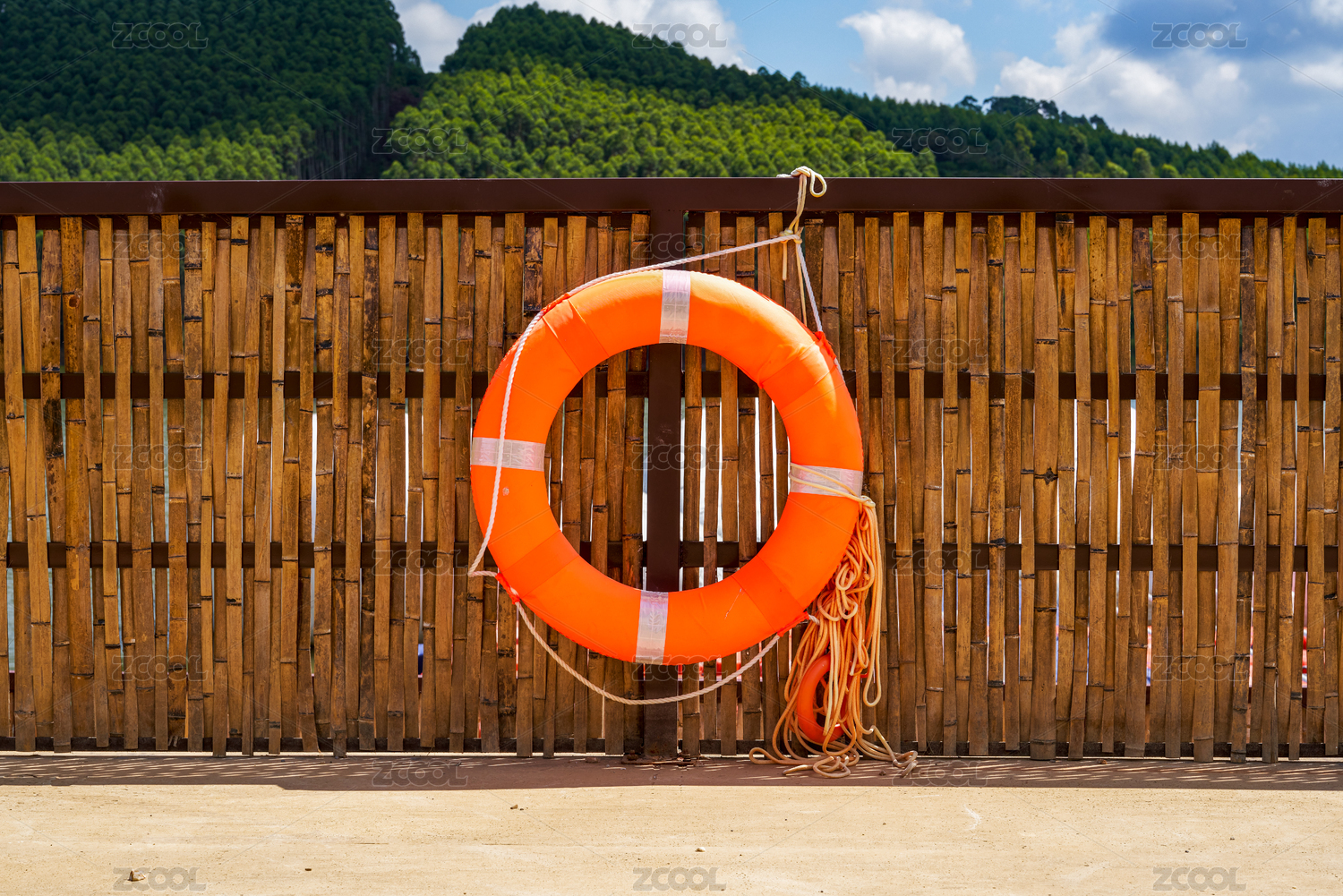 年轻可爱的女童戴木地板水手服装的地位和携带救生圈准备前往的特写照片。