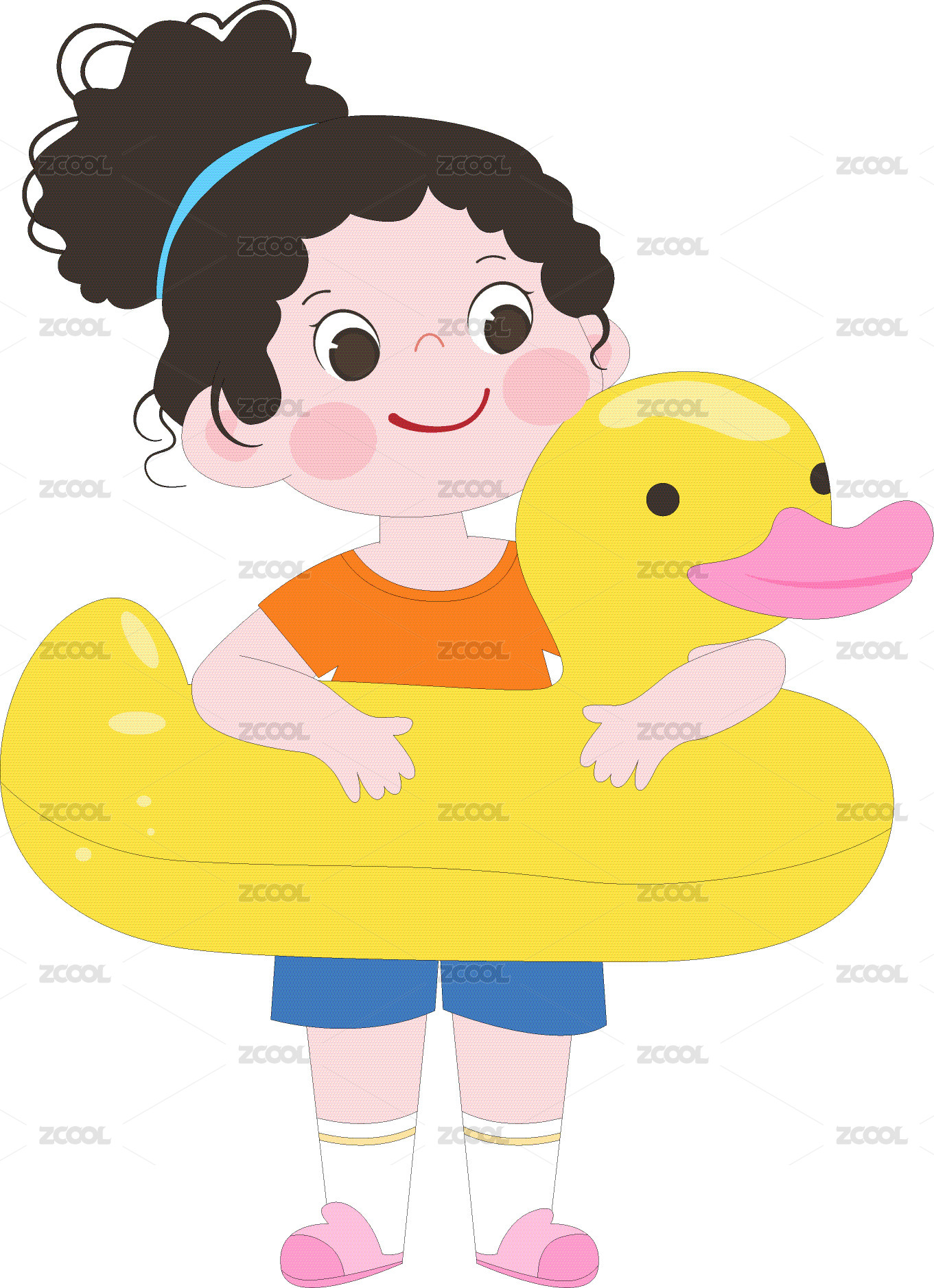 小男孩夏天戴救生圈游泳清凉手绘卡通儿童插画设计