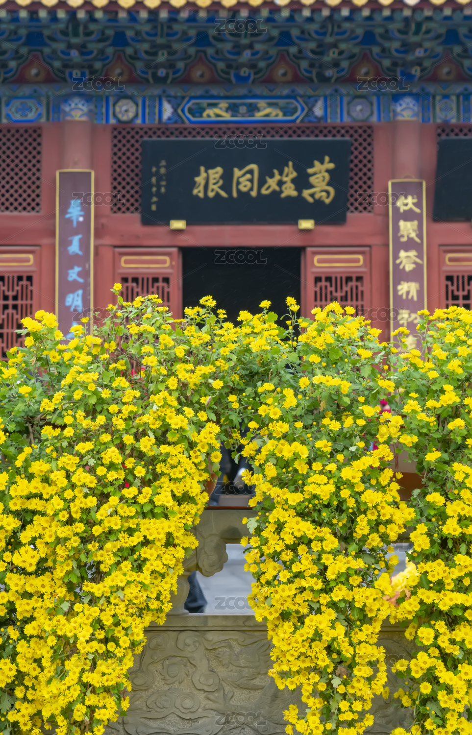 河南周口淮阳太昊陵万姓同根牌匾前菊展